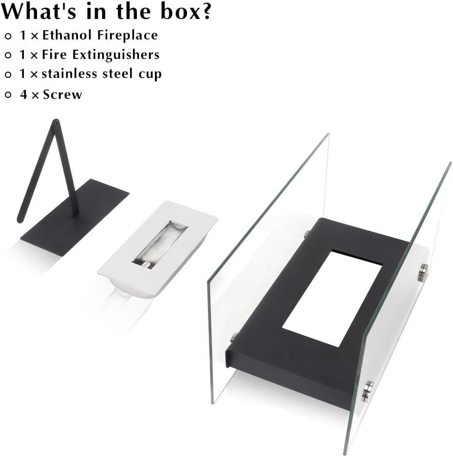 1. 130ml ethanol is enough to fill the tabletop fireplace. With 130ml ethanol, it can last burning about 1 hour with charming lights.2. Do not smoke while filling the fuel pot.3. For extra protection, as with all items with open flames, keep an easily accessible fire extinguisher nearby4. Use only approved liquid ethanol for tabletop fireploces. Do not use any other combustible, such as bio-ethanol car fuel.5. Do not use the fireplace to cook food or heat water.6. Do not move fireplace while lit.7. Never leave the lit fireplace unattended.8. No need to take off the white fiberglass which is used for absorbing ethanol. |