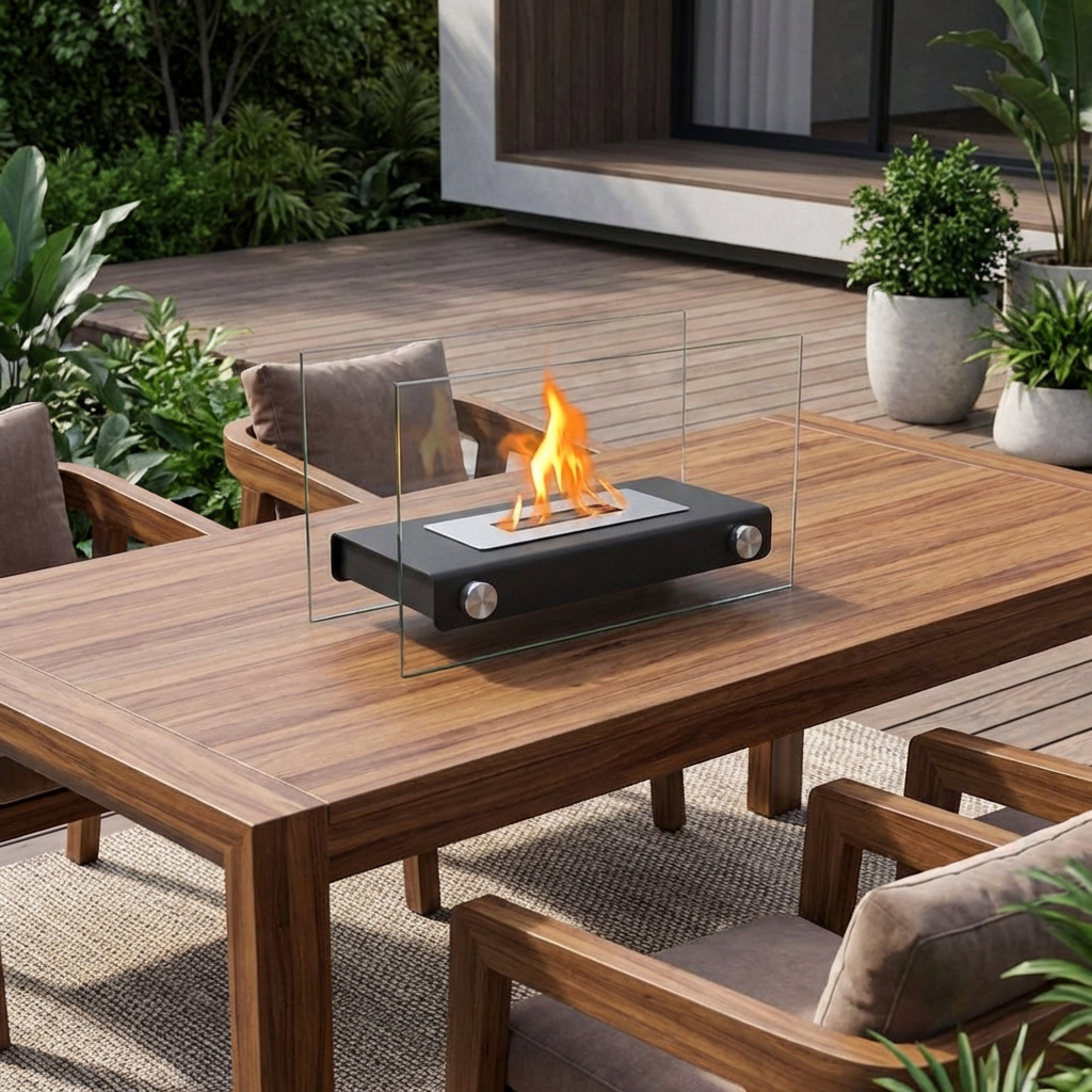 The 14-inch black and silver metal bioethanol portable firepit adds a stylish warmth to any outdoor or indoor space. This versatile firepit utilizes bioethanol fuel, providing a clean-burning flame that creates a cozy atmosphere. Made from durable metal, it combines modern aesthetics with practicality, ensuring long-lasting use. Perfect for gatherings or quiet evenings, it produces ample heat, making it an ideal centerpiece for your relaxation areas. Its compact design allows for easy transport, so you can enjoy the flickering flames wherever you go. Elevate your home decor and create unforgettable moments with this elegant and functional portable firepit. 7.50-inch h x 13.80-inch w x 6.70-inch d.