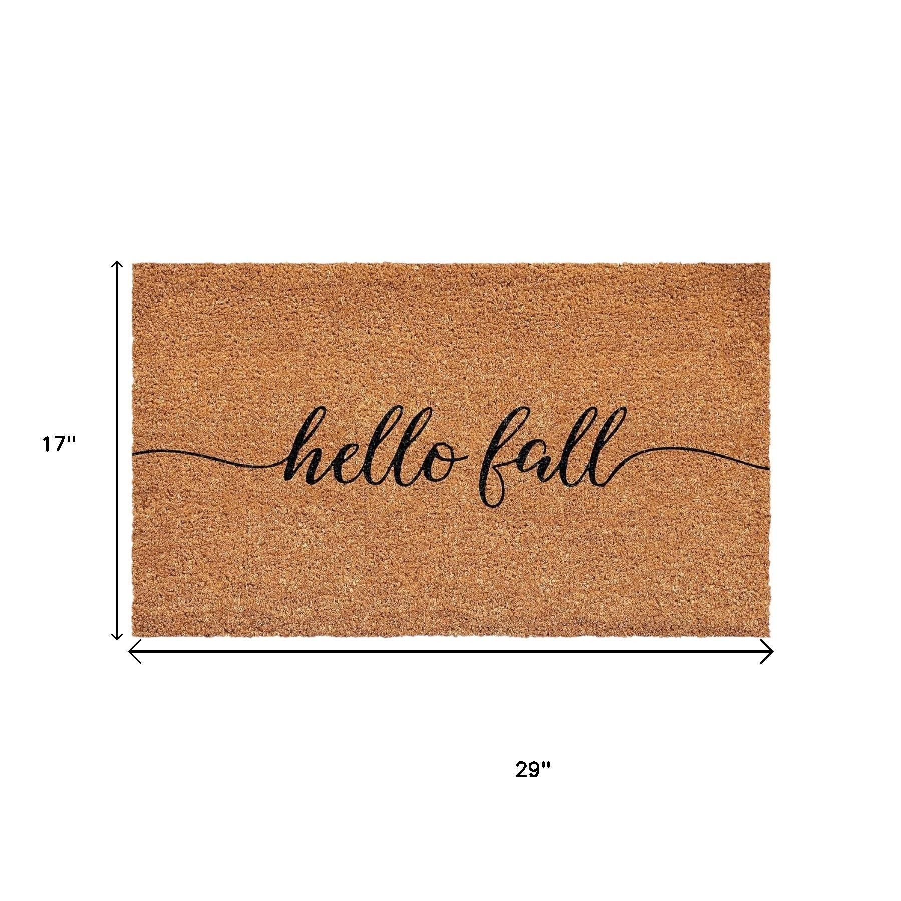 Known for it's extreme durability and ability to withstand heavy foot traffic, this 17-inch x 29-inch brown and natural fall hello fall outdoor coir door mat is an ideal option for the front door or entrance way of your home or business. Crafted from coconut husks, this mat is not only functional but is an an eco-friendly and visually appealing accessory. The naturally bristled texture of coir is an efficient way to clean dirt and mud from shoes and is easy to clean and maintain. Add this decorative mat to create a practical yet inviting welcome to all who enter. 17.00-inch h x 29.00-inch w x 0.60-inch d.