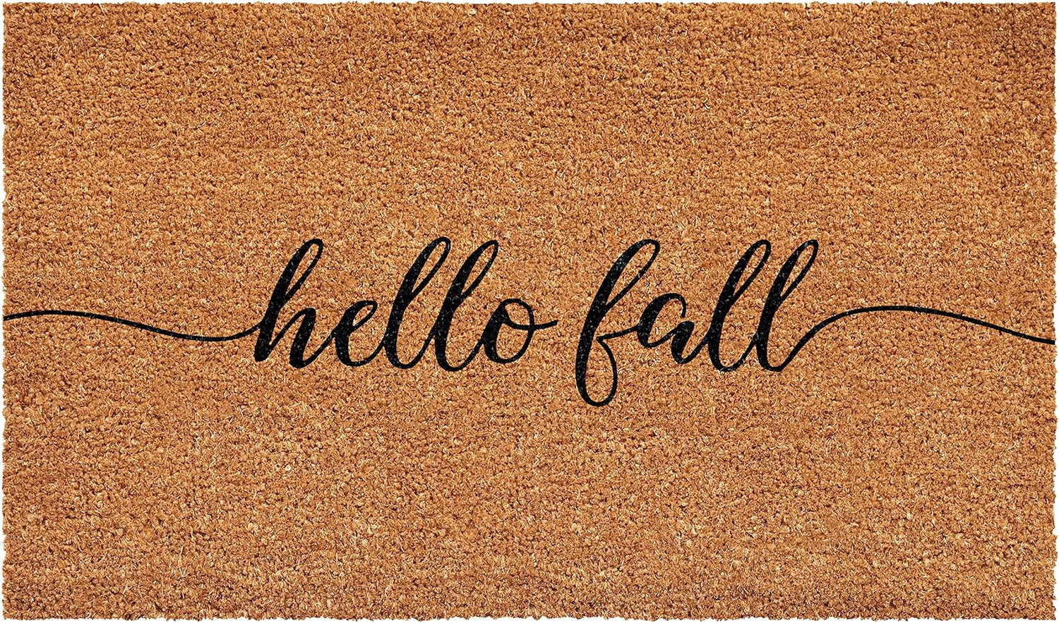 fall outdoor coir door mat, outdoor coir door mat, coir door mat, hello fall outdoor coir door, 24" X 36" brown natural fall |