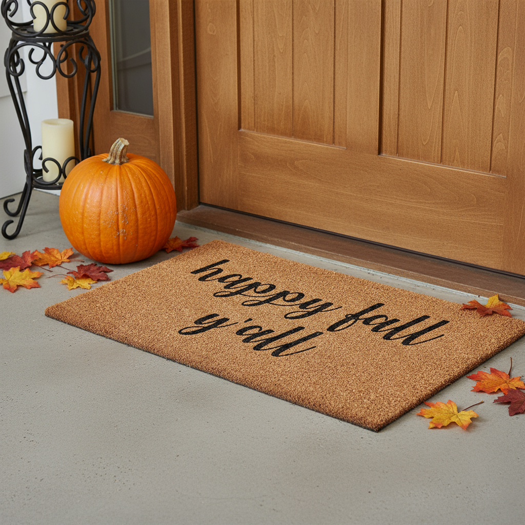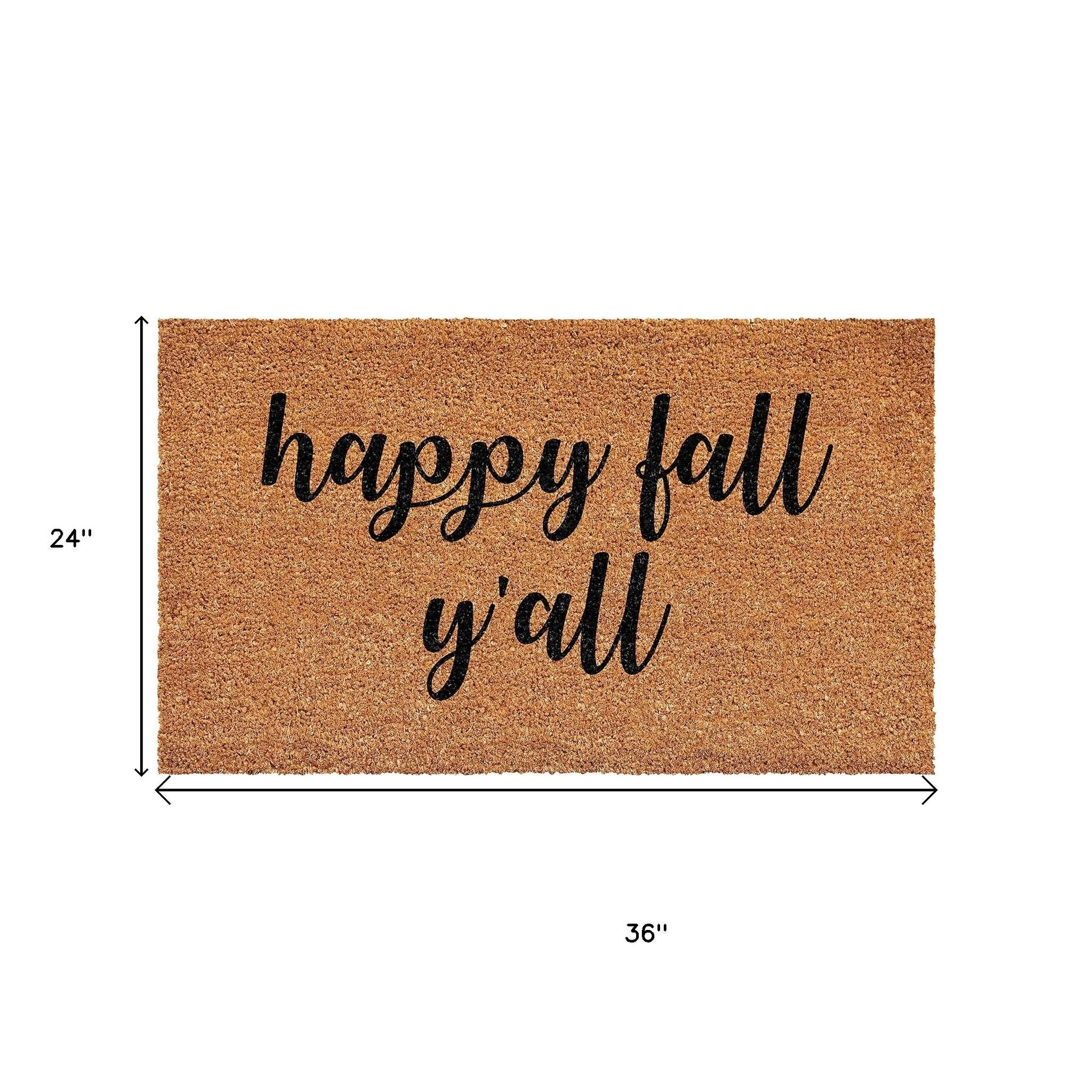 Known for it's extreme durability and ability to withstand heavy foot traffic, this 24-inch x 36-inch brown and natural fall happy fall y'all outdoor coir door mat is an ideal option for the front door or entrance way of your home or business. Crafted from coconut husks, this mat is not only functional but is an an eco-friendly and visually appealing accessory. The naturally bristled texture of coir is an efficient way to clean dirt and mud from shoes and is easy to clean and maintain. Add this decorative mat to create a practical yet inviting welcome to all who enter. 24.00-inch h x 36.00-inch w x 0.60-inch d.