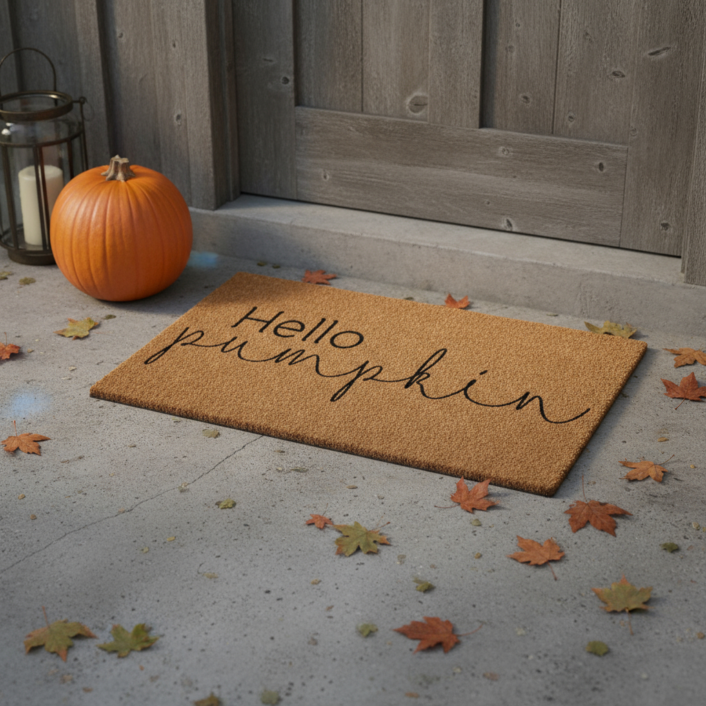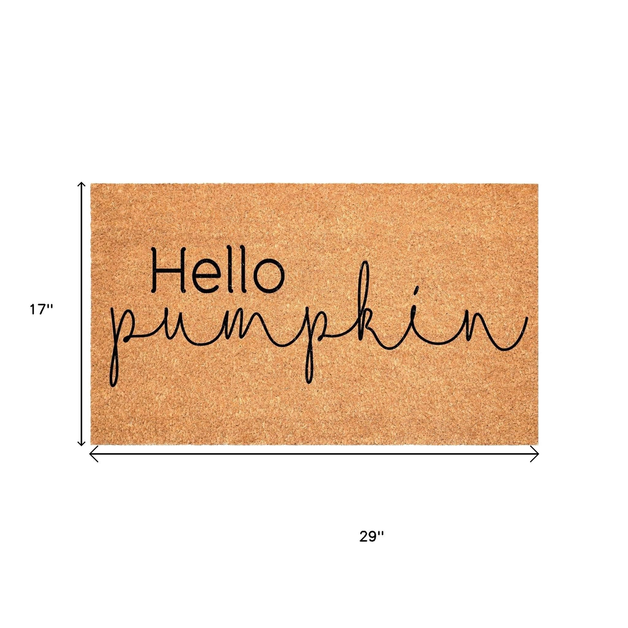 Known for it's extreme durability and ability to withstand heavy foot traffic, this 17-inch x 29-inch brown and natural fall hello pumpkin outdoor coir door mat is an ideal option for the front door or entrance way of your home or business. Crafted from coconut husks, this mat is not only functional but is an an eco-friendly and visually appealing accessory. The naturally bristled texture of coir is an efficient way to clean dirt and mud from shoes and is easy to clean and maintain. Add this decorative mat to create a practical yet inviting welcome to all who enter. 17.00-inch h x 29.00-inch w x 0.60-inch d.