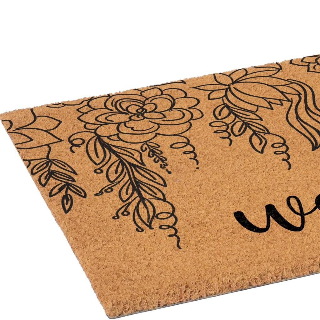 welcome outdoor coir door mat, outdoor coir door mat, coir door mat, floral welcome outdoor coir door, 24" X 36" brown natural floral welcome |