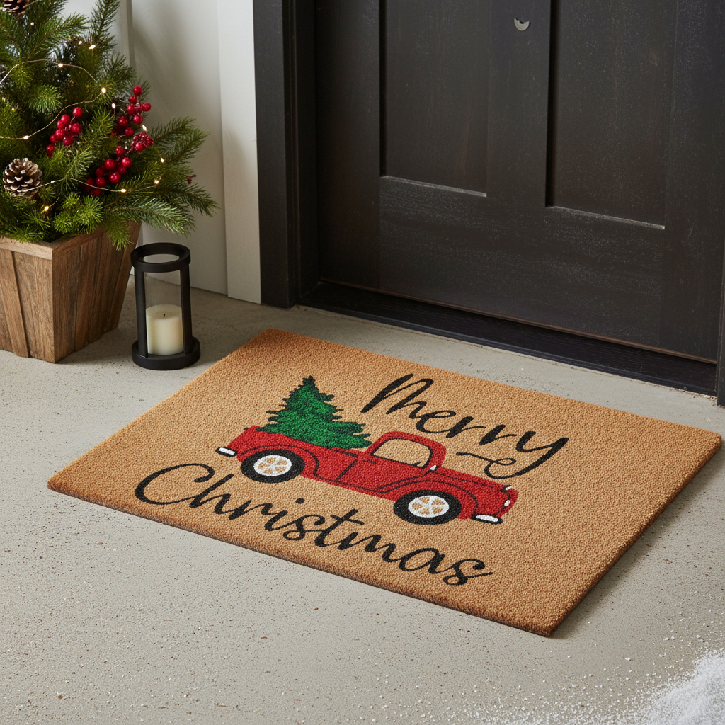christmas outdoor coir door mat, outdoor coir door mat, coir door mat, merry christmas outdoor coir door, 17" X 29" brown red green christmas |