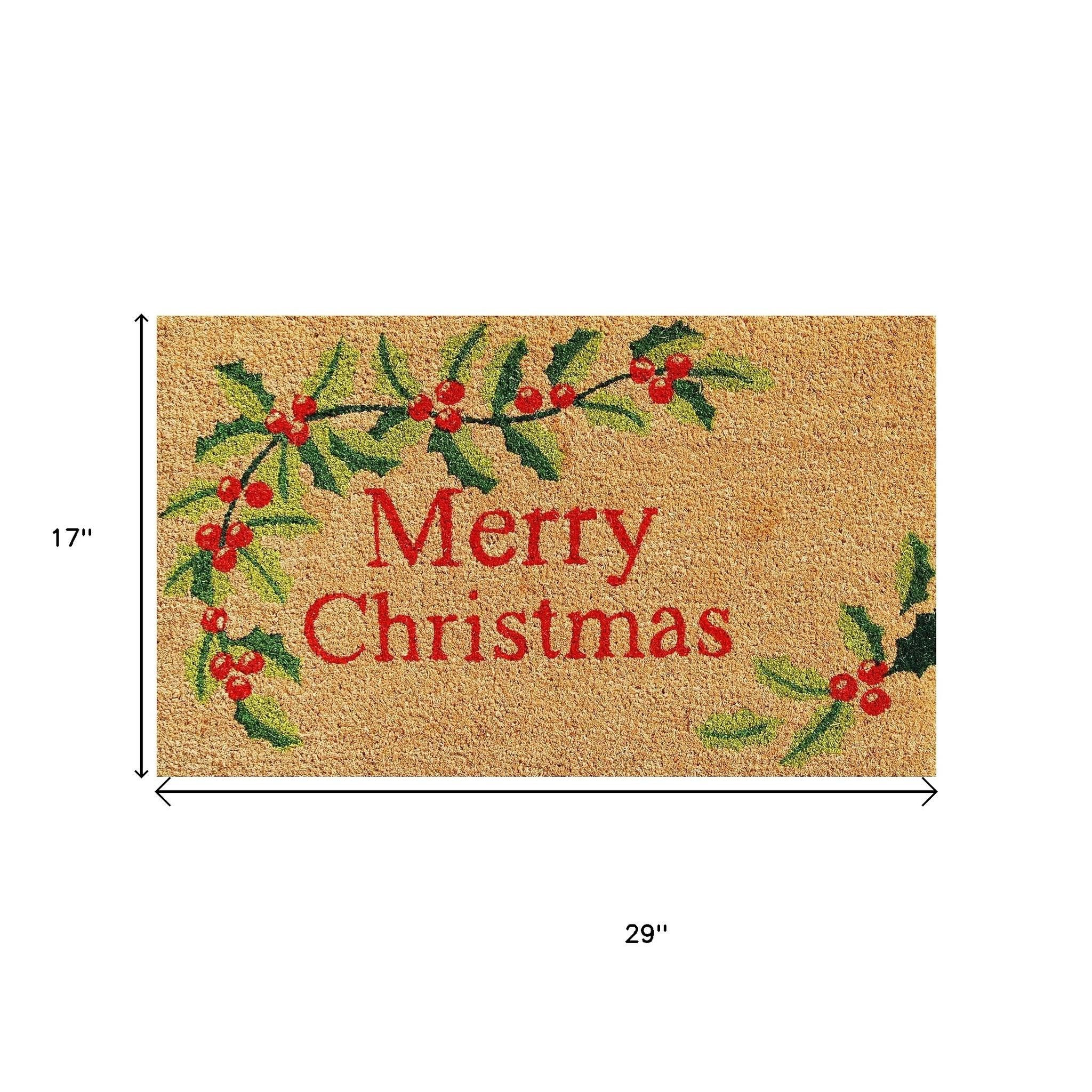 Known for it's extreme durability and ability to withstand heavy foot traffic, this 17-inch x 29-inch brown red and green merry christmas outdoor coir door mat is an ideal option for the front door or entrance way of your home or business. Crafted from coconut husks, this mat is not only functional but is an an eco-friendly and visually appealing accessory. The naturally bristled texture of coir is an efficient way to clean dirt and mud from shoes and is easy to clean and maintain. Add this festive and decorative christmas mat to create a practical yet inviting welcome to all who enter. 17.00-inch h x 29.00-inch w x 0.60-inch d.