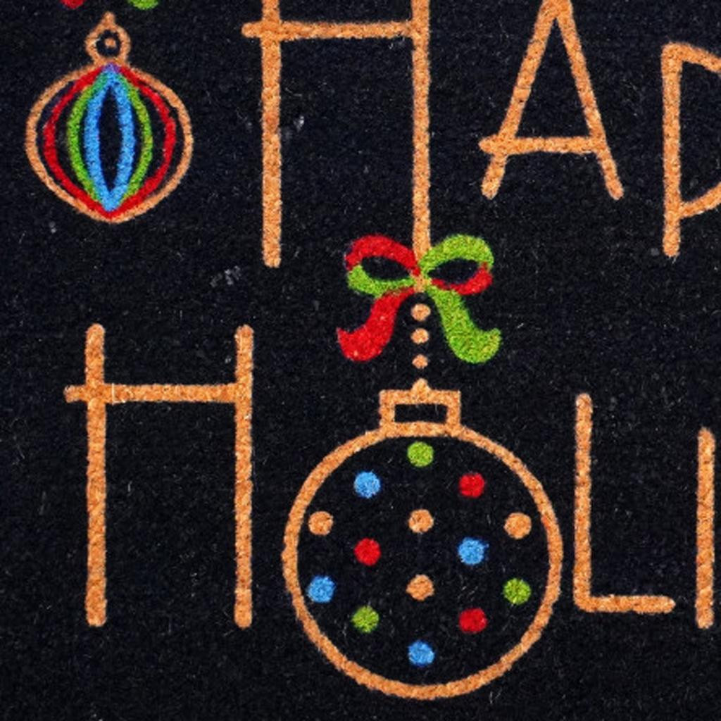 Known for it's extreme durability and ability to withstand heavy foot traffic, this 17-inch x 29-inch black and brown christmas happy holidays outdoor coir door mat is an ideal option for the front door or entrance way of your home or business. Crafted from coconut husks, this mat is not only functional but is an an eco-friendly and visually appealing accessory. The naturally bristled texture of coir is an efficient way to clean dirt and mud from shoes and is easy to clean and maintain. Add this festive and decorative christmas mat to create a practical yet inviting welcome to all who enter. 17.00-inch h x 29.00-inch w x 0.60-inch d.
