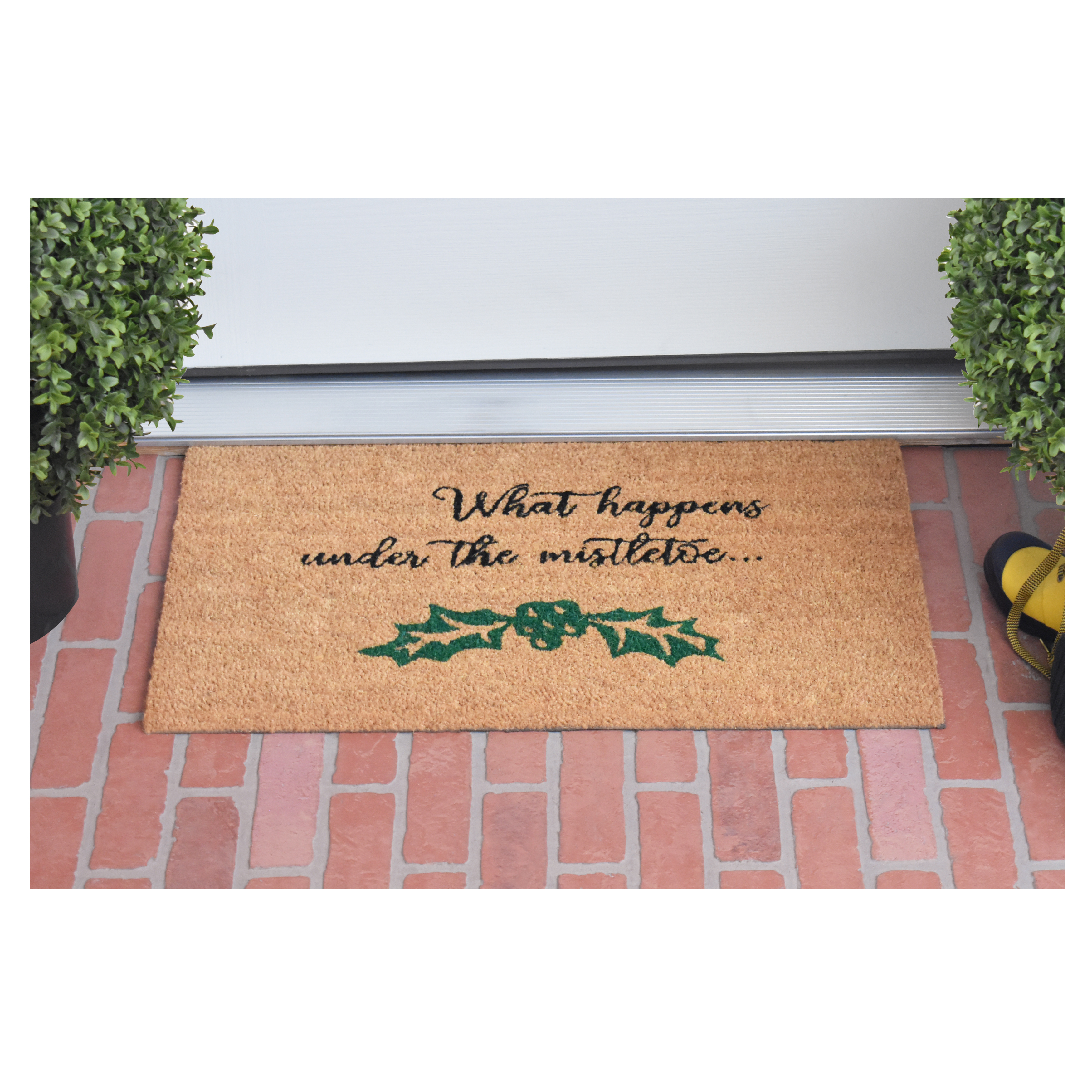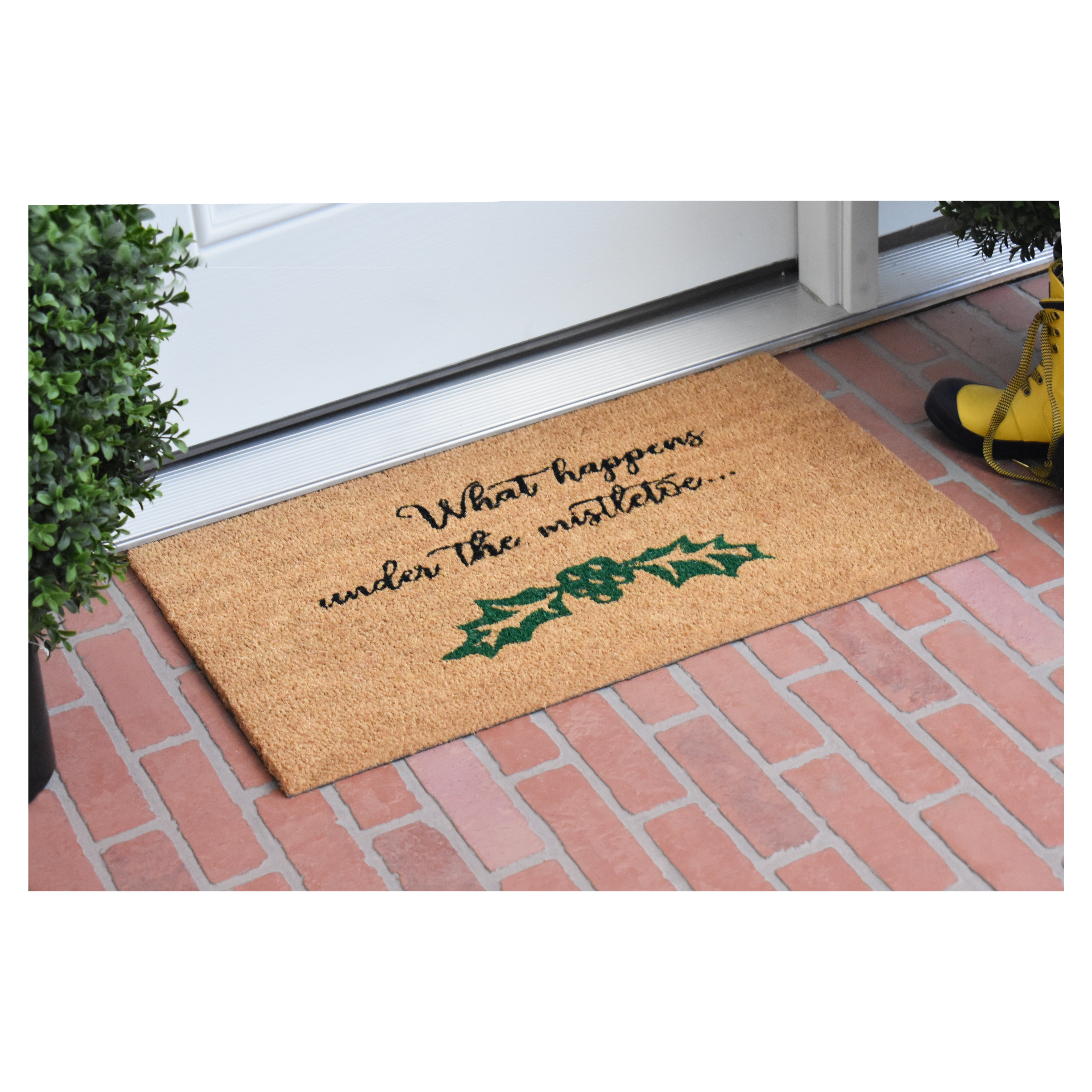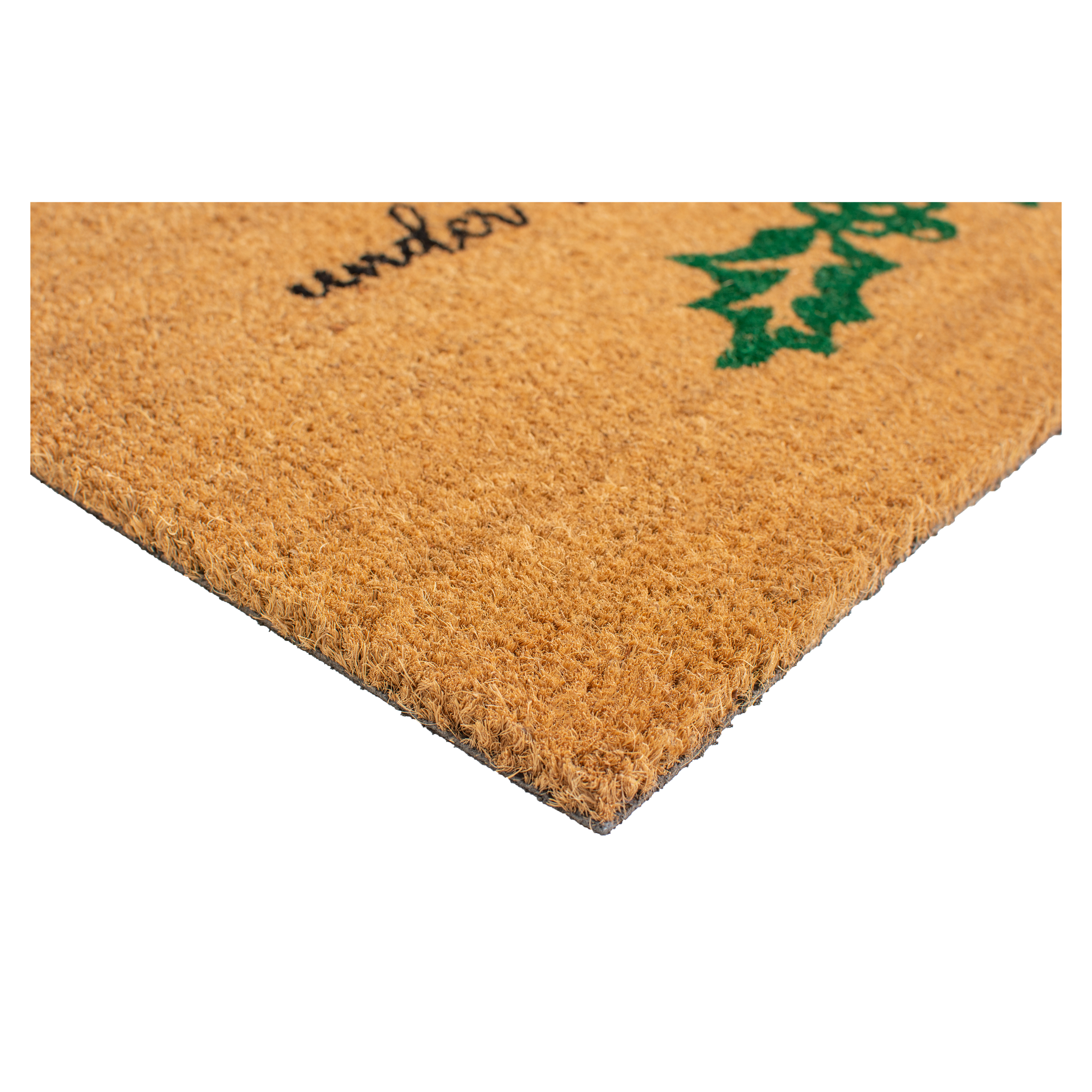 Known for it's extreme durability and ability to withstand heavy foot traffic, this 17-inch x 29-inch brown black and green christmas outdoor coir door mat is an ideal option for the front door or entrance way of your home or business. Crafted from coconut husks, this mat is not only functional but is an an eco-friendly and visually appealing accessory. The naturally bristled texture of coir is an efficient way to clean dirt and mud from shoes and is easy to clean and maintain. Add this festive and decorative christmas mat to create a practical yet inviting welcome to all who enter. 17.00-inch h x 29.00-inch w x 0.60-inch d.