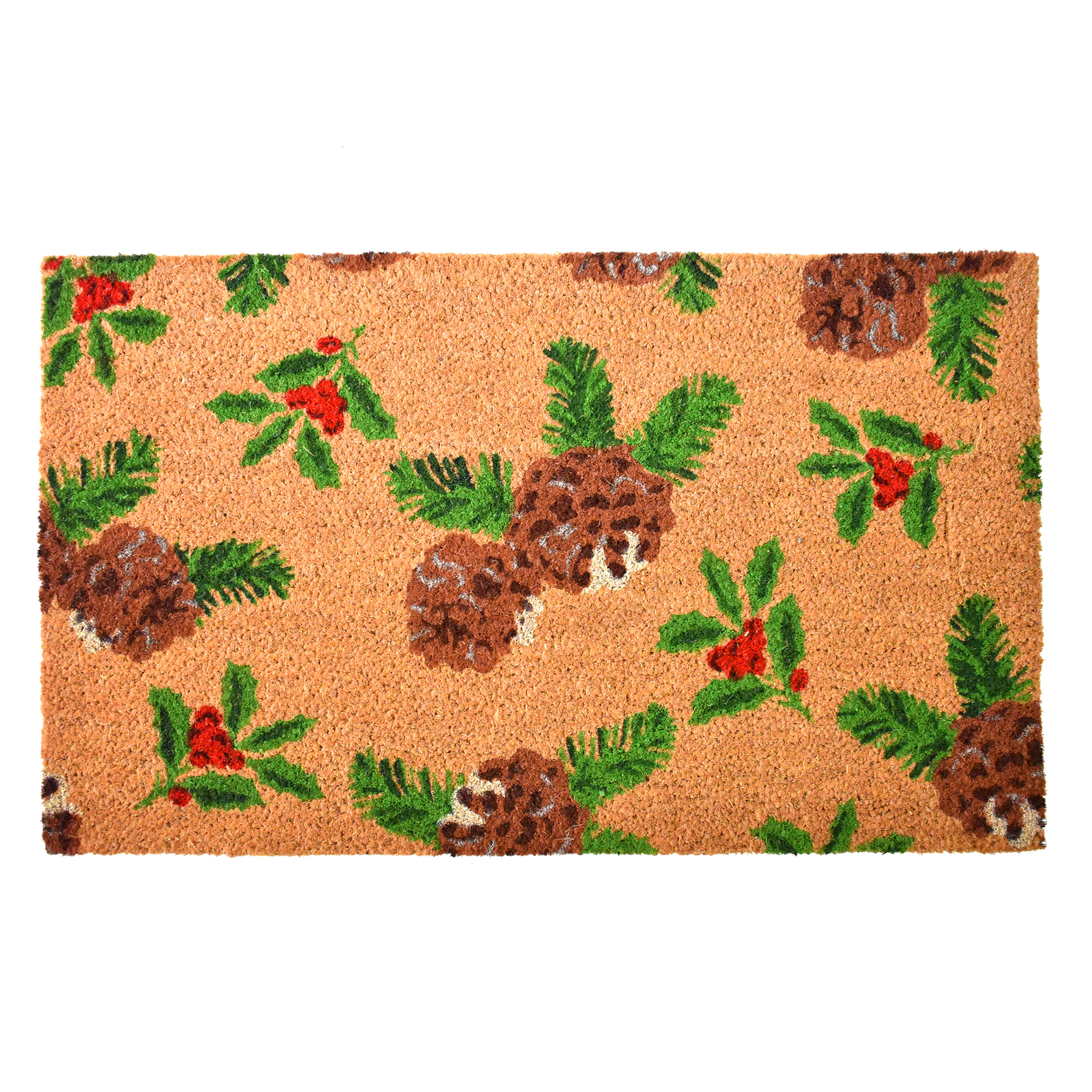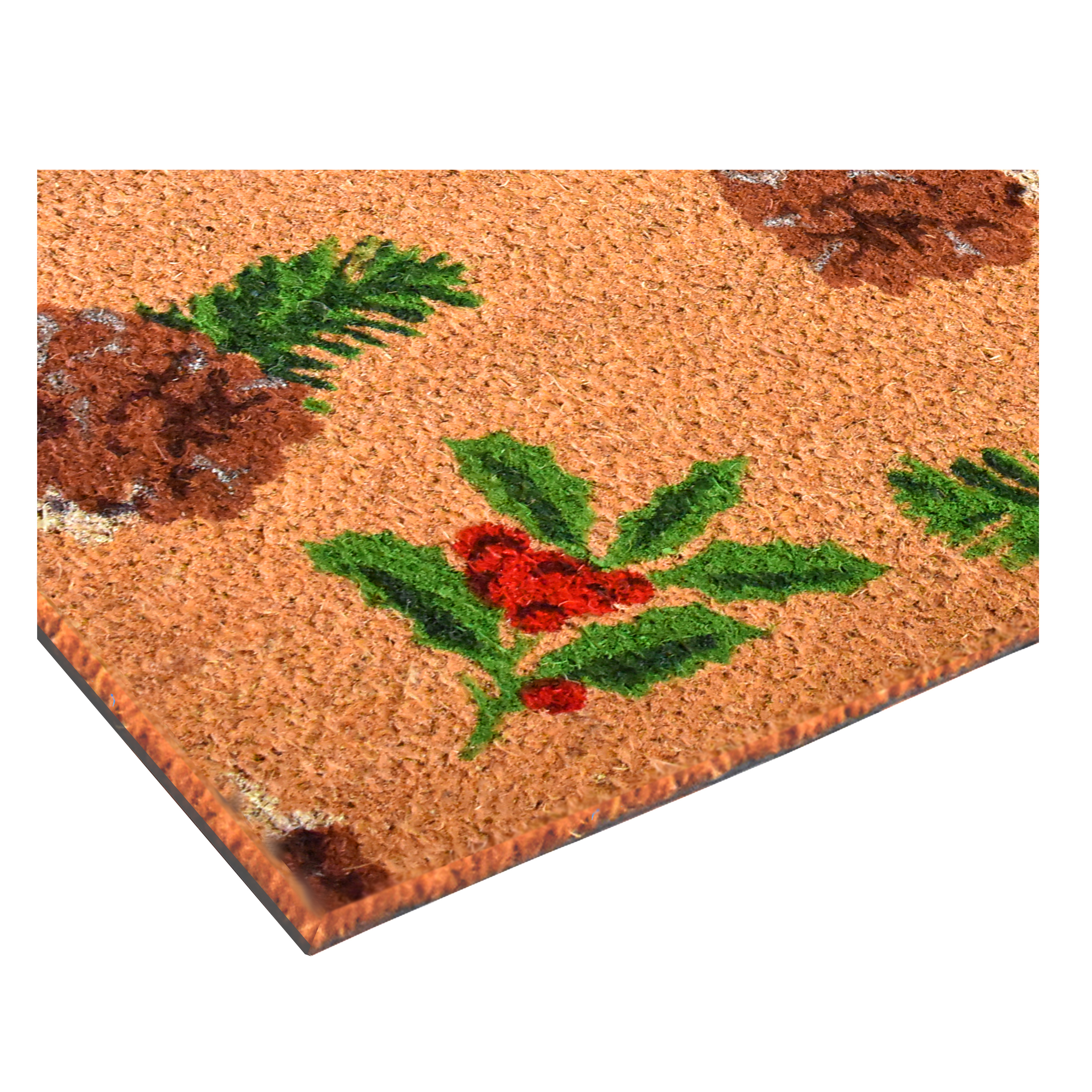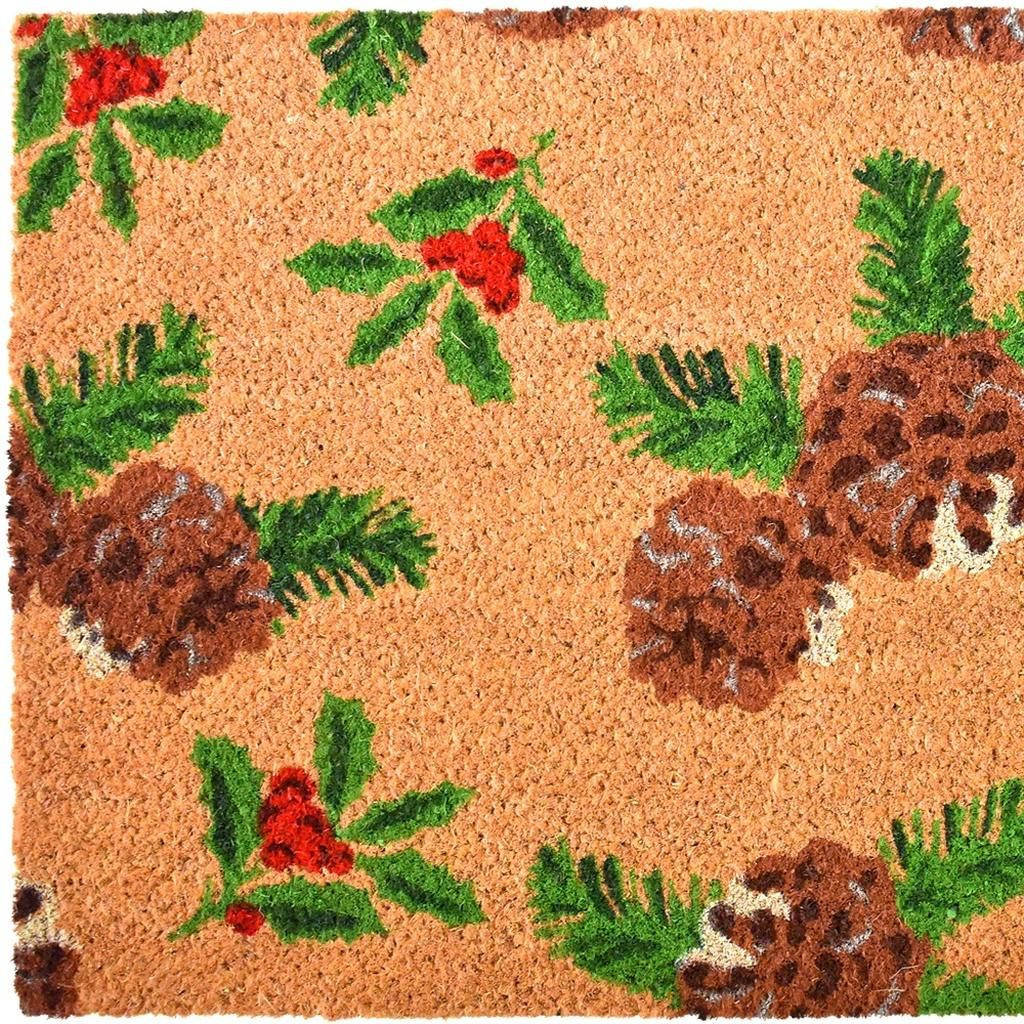 Known for it's extreme durability and ability to withstand heavy foot traffic, this 17-inch x 29-inch brown red and green christmas outdoor coir door mat is an ideal option for the front door or entrance way of your home or business. Crafted from coconut husks, this mat is not only functional but is an an eco-friendly and visually appealing accessory. The naturally bristled texture of coir is an efficient way to clean dirt and mud from shoes and is easy to clean and maintain. Add this festive and decorative christmas mat to create a practical yet inviting welcome to all who enter. 17.00-inch h x 29.00-inch w x 0.60-inch d.