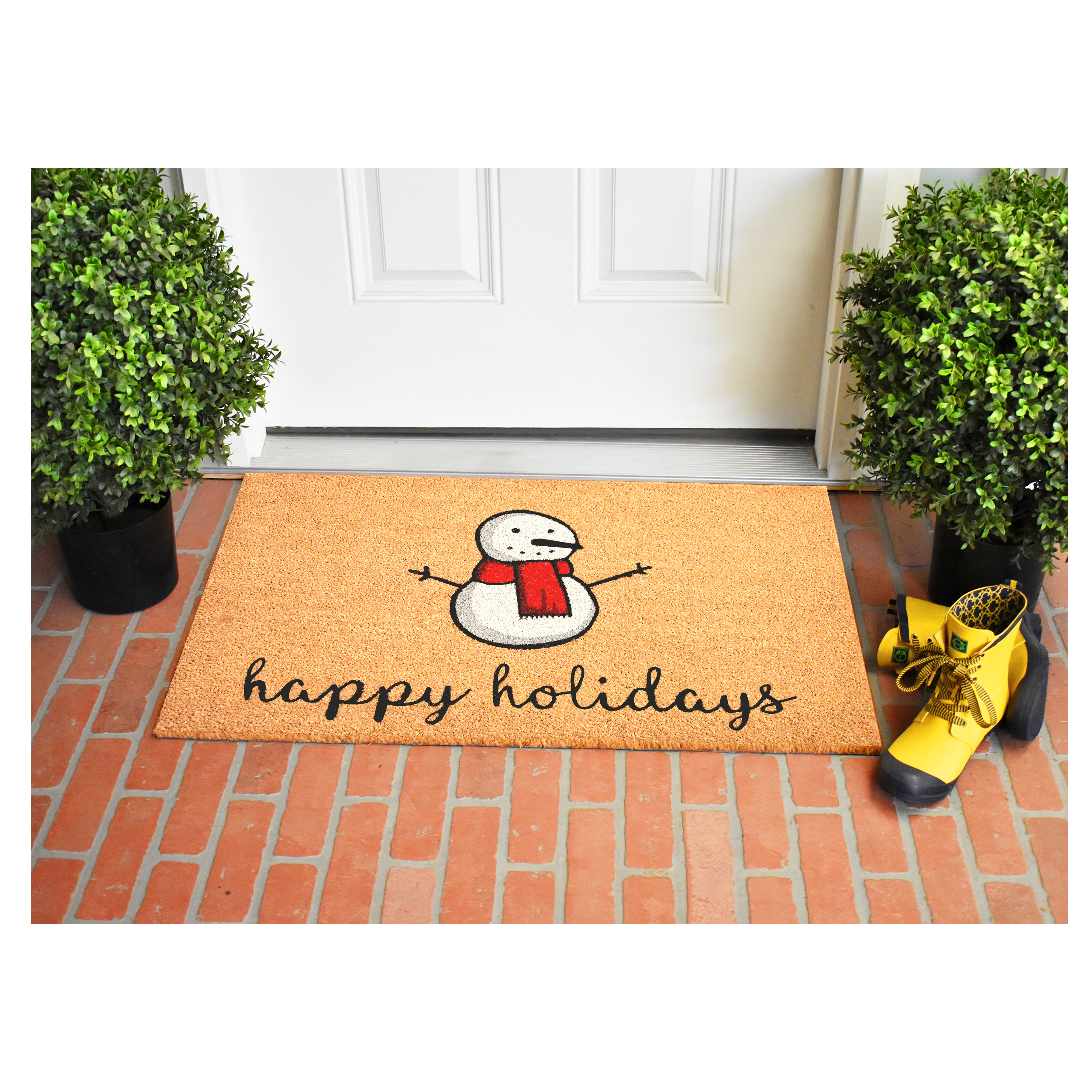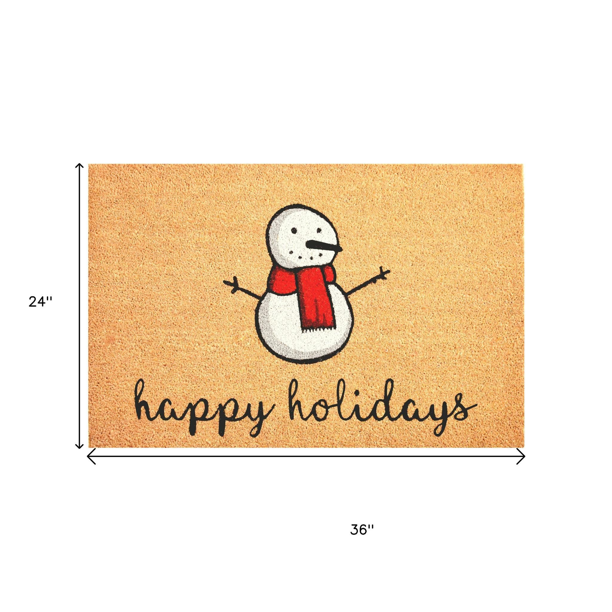 holidays outdoor coir door mat, outdoor coir door mat, 24" X 36" brown white red christmas, brown white red christmas snowman, christmas snowman happy holidays outdoor |