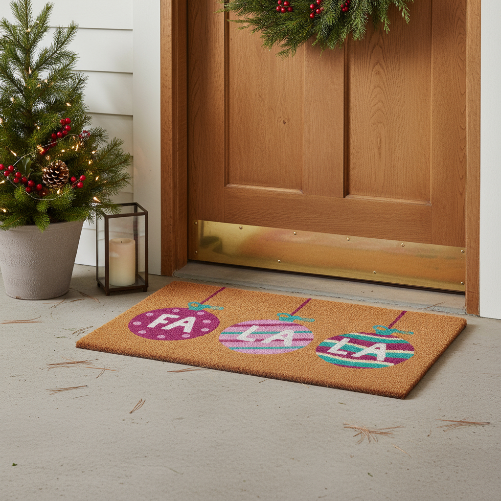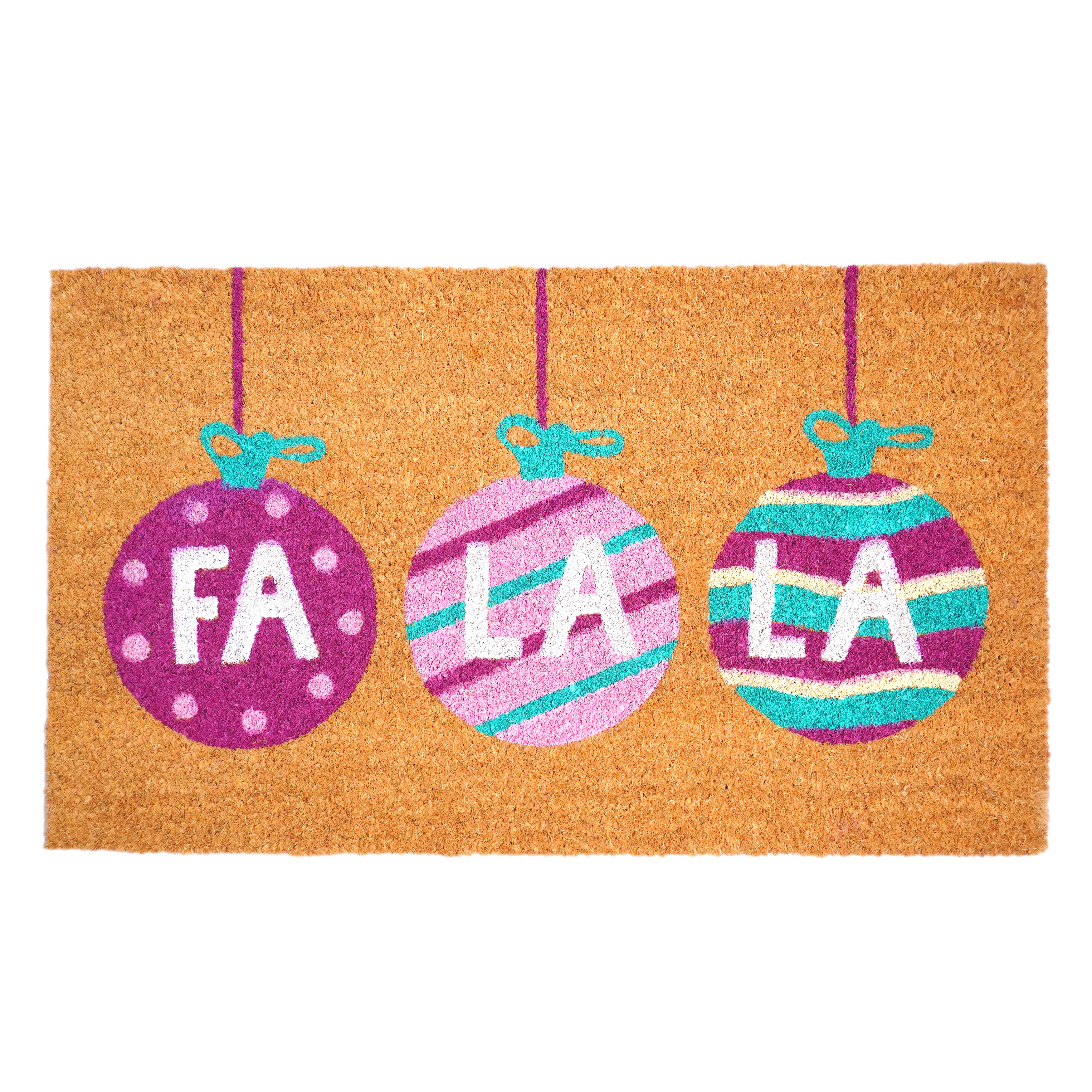christmas outdoor coir door mat, outdoor coir door mat, coir door mat, pink christmas outdoor coir door, 17" X 29" brown white pink christmas |