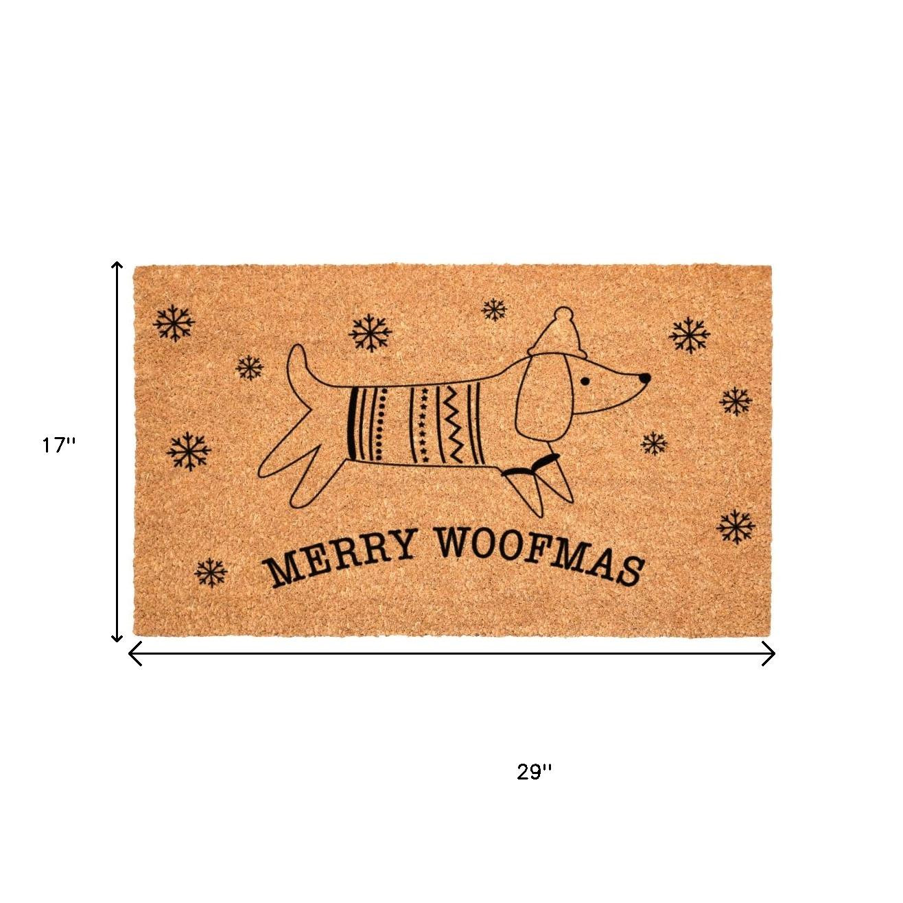 Known for it's extreme durability and ability to withstand heavy foot traffic, this 17-inch x 29-inch brown and black Christmas dachshund outdoor coir door mat is an ideal option for the front door or entrance way of your home or business. Crafted from coconut husks, this mat is not only functional but is an an eco-friendly and visually appealing accessory. The naturally bristled texture of coir is an efficient way to clean dirt and mud from shoes and is easy to clean and maintain. Add this festive and decorative funny Dachshund lovers Christmas mat to create a practical yet inviting welcome to all who enter. 17.00-inch h x 29.00-inch w x 0.60-inch d.