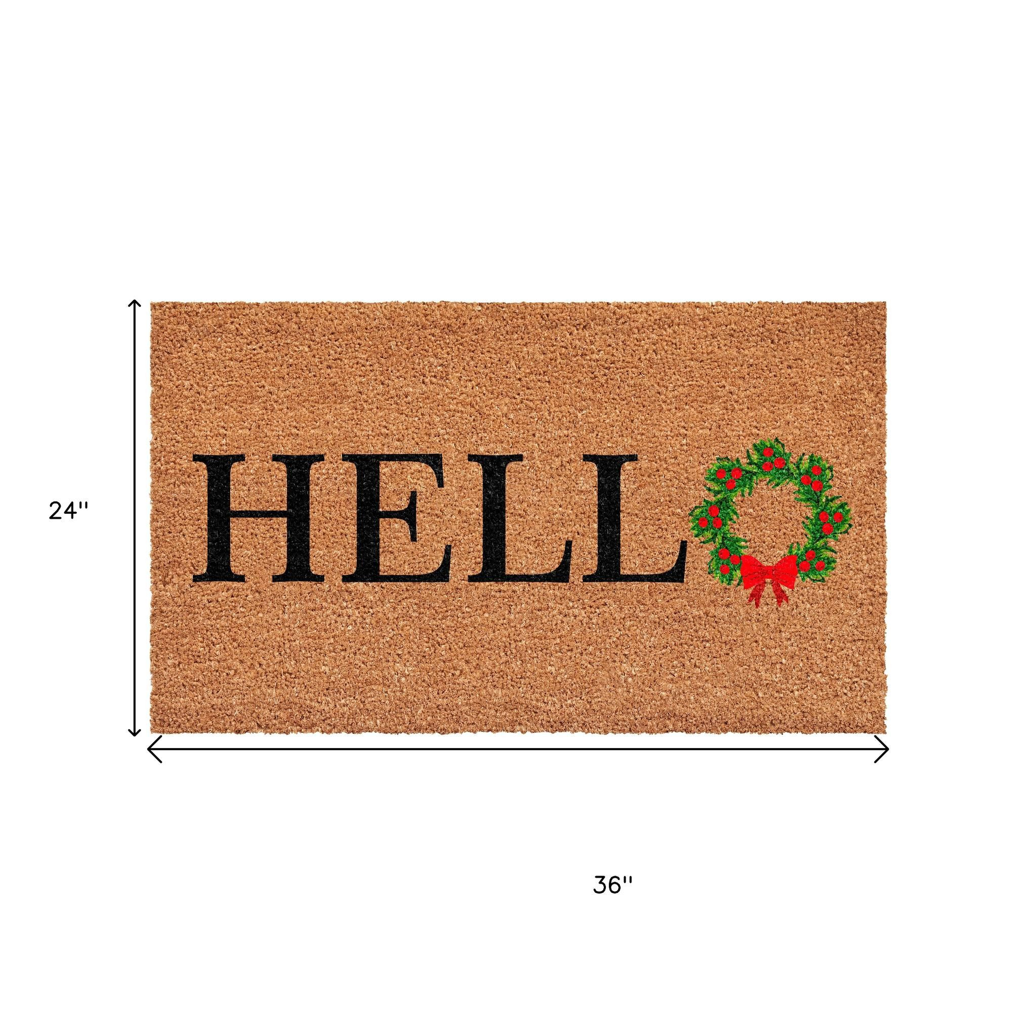 Known for it's extreme durability and ability to withstand heavy foot traffic, this 24-inch x 36-inch brown black and green christmas outdoor coir door mat is an ideal option for the front door or entrance way of your home or business. Crafted from coconut husks, this mat is not only functional but is an an eco-friendly and visually appealing accessory. The naturally bristled texture of coir is an efficient way to clean dirt and mud from shoes and is easy to clean and maintain. Add this festive and decorative christmas mat to create a practical yet inviting welcome to all who enter. 24.00-inch h x 36.00-inch w x 0.60-inch d.