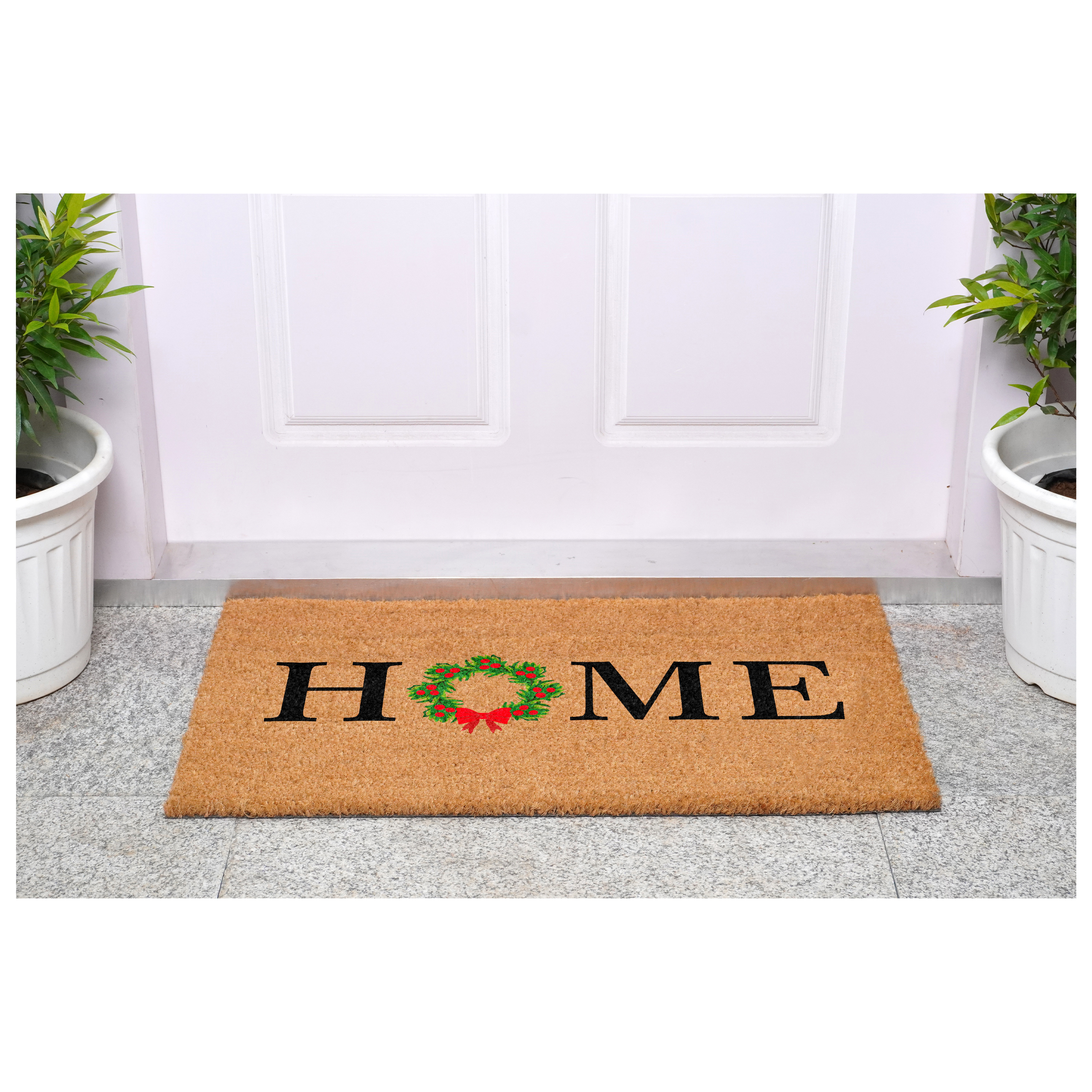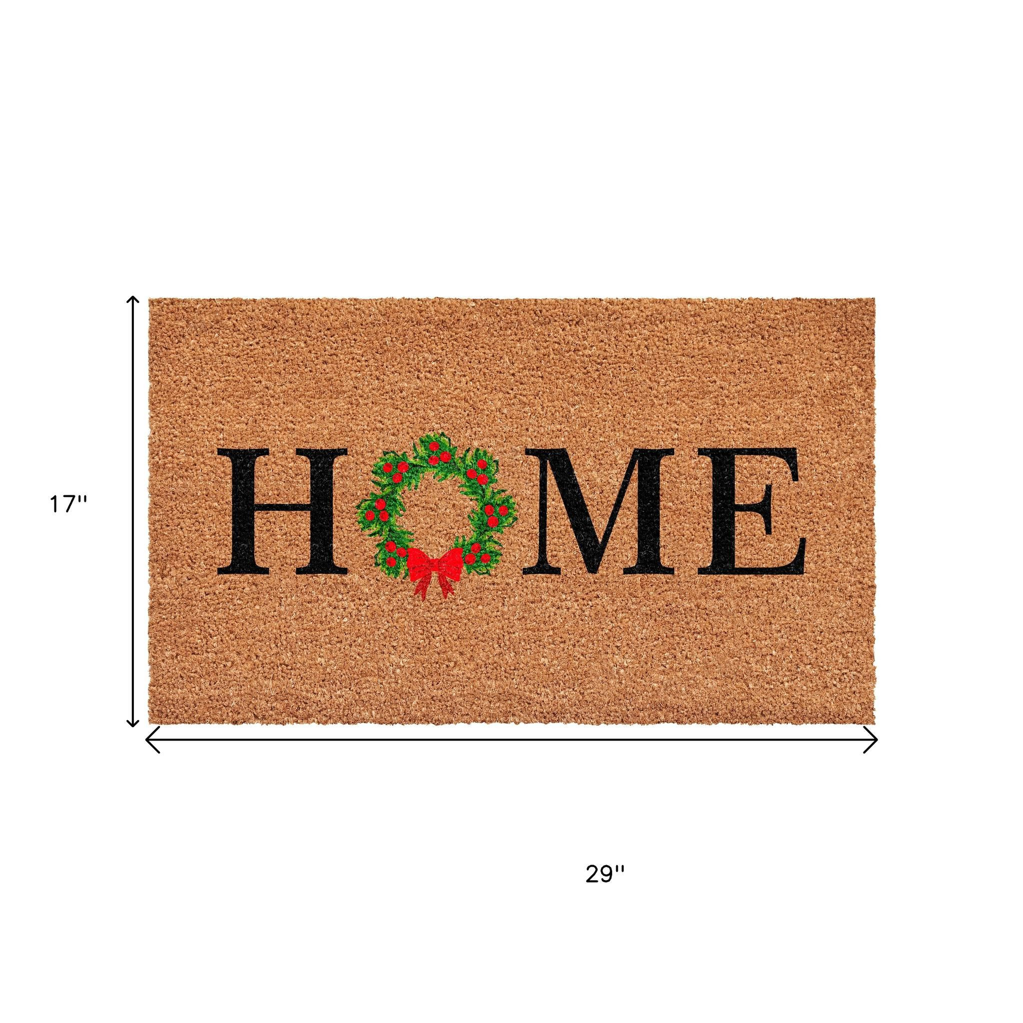 Known for it's extreme durability and ability to withstand heavy foot traffic, this 17-inch x 29-inch brown black and green christmas outdoor coir door mat is an ideal option for the front door or entrance way of your home or business. Crafted from coconut husks, this mat is not only functional but is an an eco-friendly and visually appealing accessory. The naturally bristled texture of coir is an efficient way to clean dirt and mud from shoes and is easy to clean and maintain. Add this festive and decorative christmas mat to create a practical yet inviting welcome to all who enter. 17.00-inch h x 29.00-inch w x 0.60-inch d.