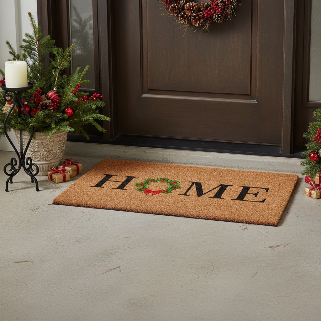 christmas outdoor coir door mat, outdoor coir door mat, coir door mat, green christmas outdoor coir door, 17" X 29" brown black green christmas |