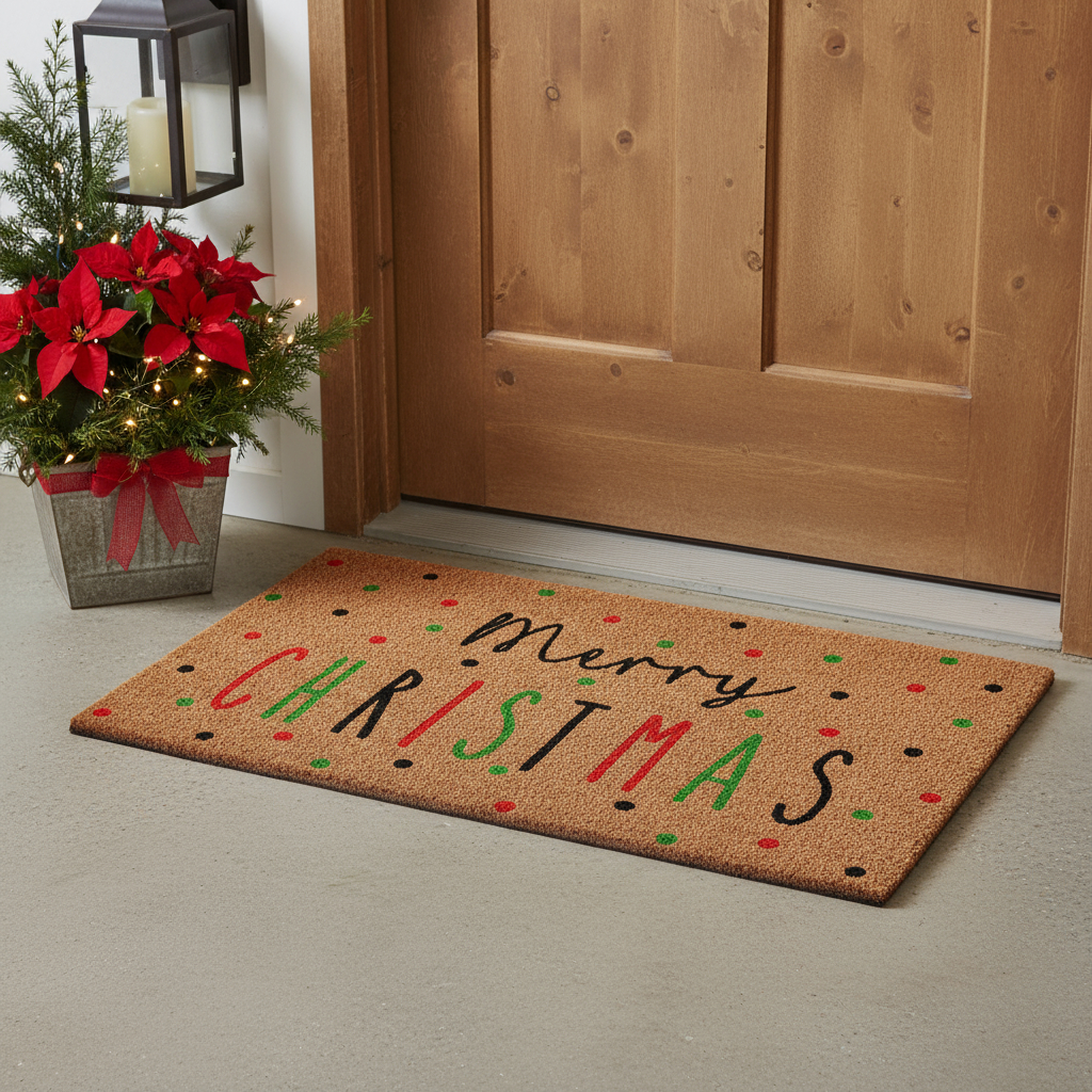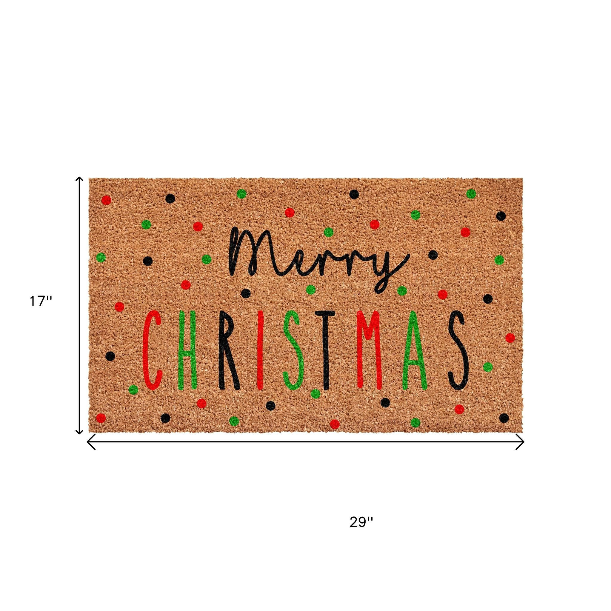 christmas outdoor coir door mat, outdoor coir door mat, coir door mat, merry christmas outdoor coir door, 17" X 29" brown black green christmas |
