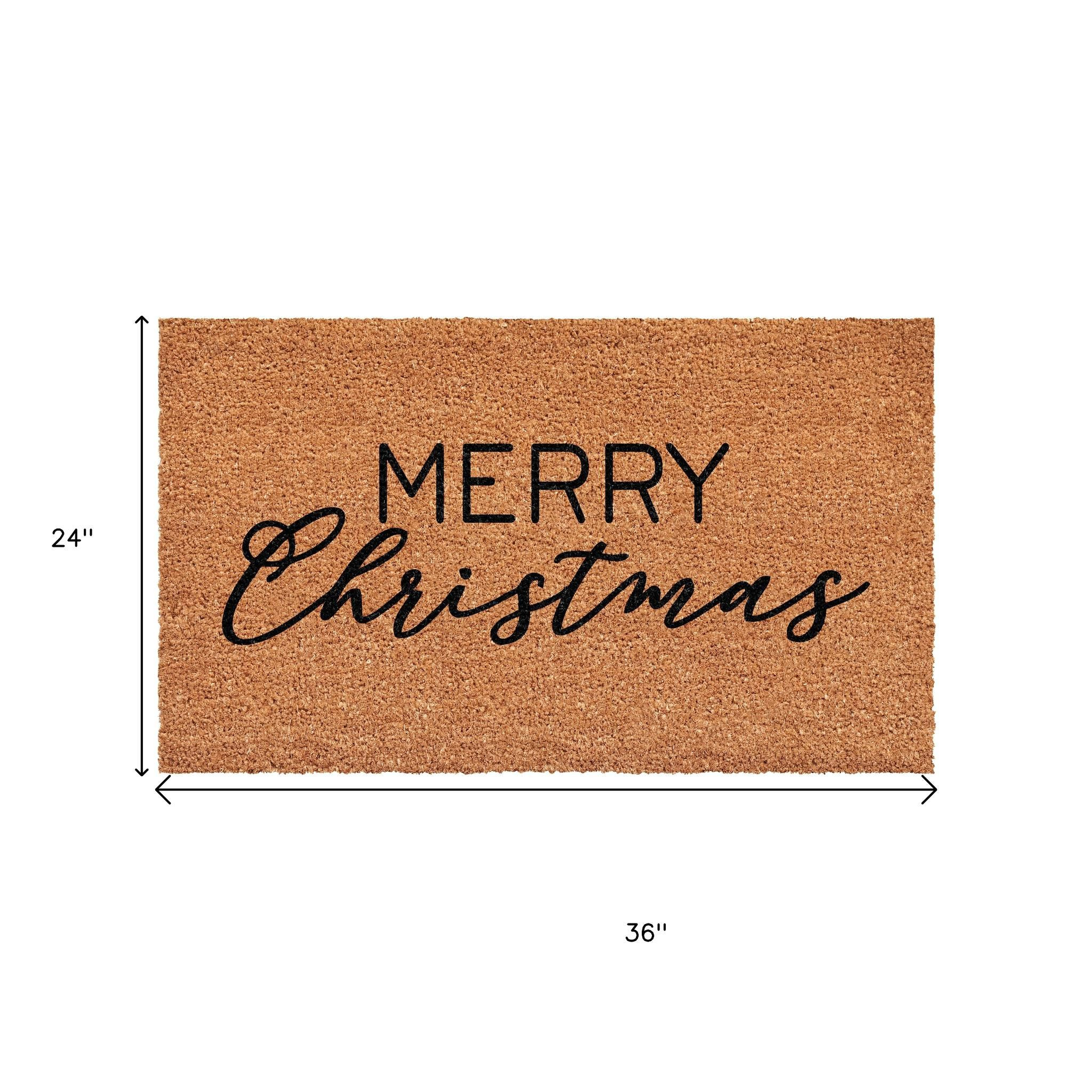 Known for it's extreme durability and ability to withstand heavy foot traffic, this 24-inch x 36-inch brown and black christmas merry christmas outdoor coir door mat is an ideal option for the front door or entrance way of your home or business. Crafted from coconut husks, this mat is not only functional but is an an eco-friendly and visually appealing accessory. The naturally bristled texture of coir is an efficient way to clean dirt and mud from shoes and is easy to clean and maintain. Add this festive and decorative christmas mat to create a practical yet inviting welcome to all who enter. 24.00-inch h x 36.00-inch w x 0.60-inch d.