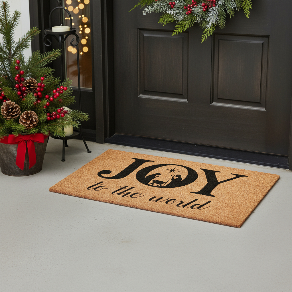 christmas outdoor coir door mat, outdoor coir door mat, coir door mat, black christmas outdoor coir door, 17" X 29" brown black christmas |