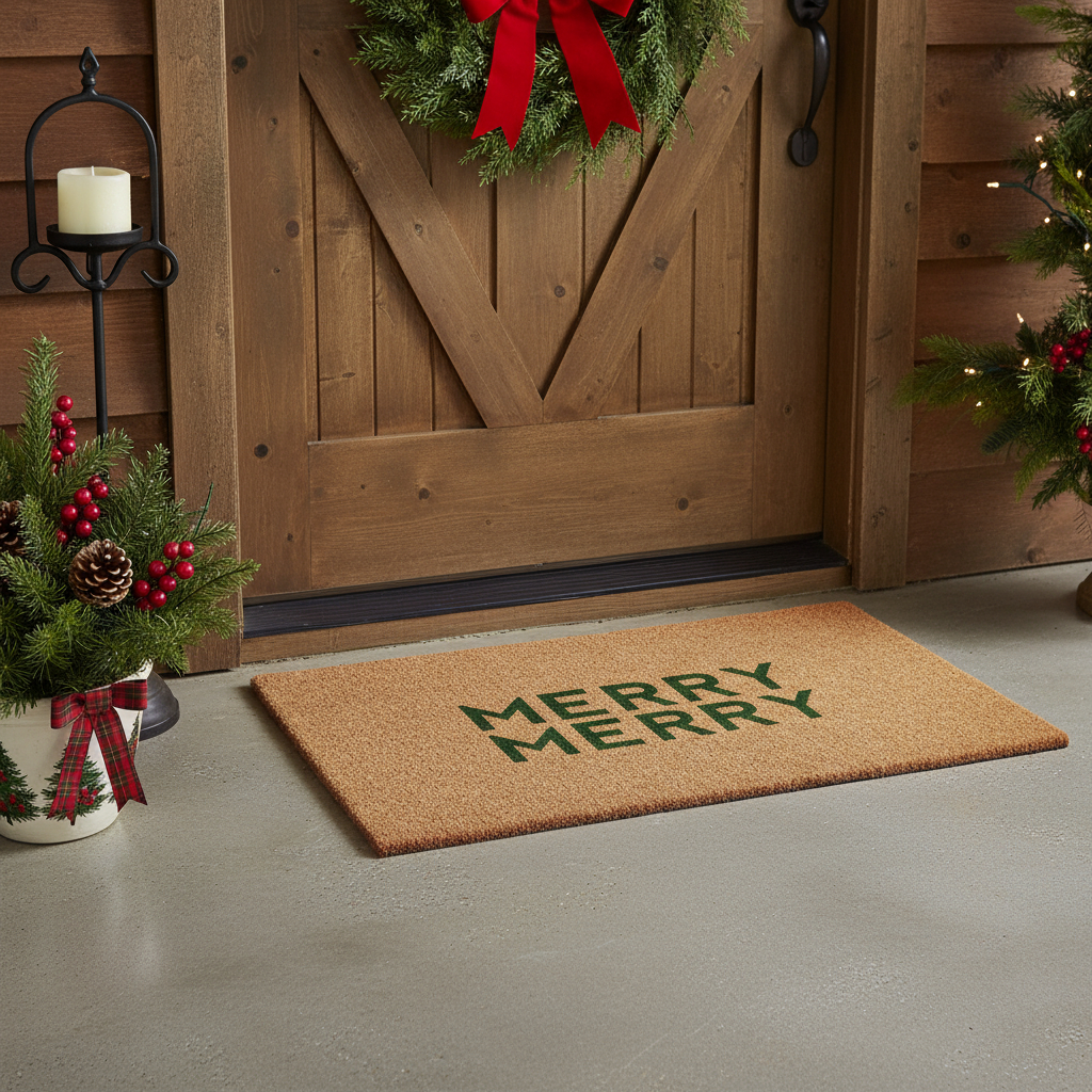 christmas outdoor coir door mat, outdoor coir door mat, coir door mat, green christmas outdoor coir door, 17" X 29" brown green christmas |