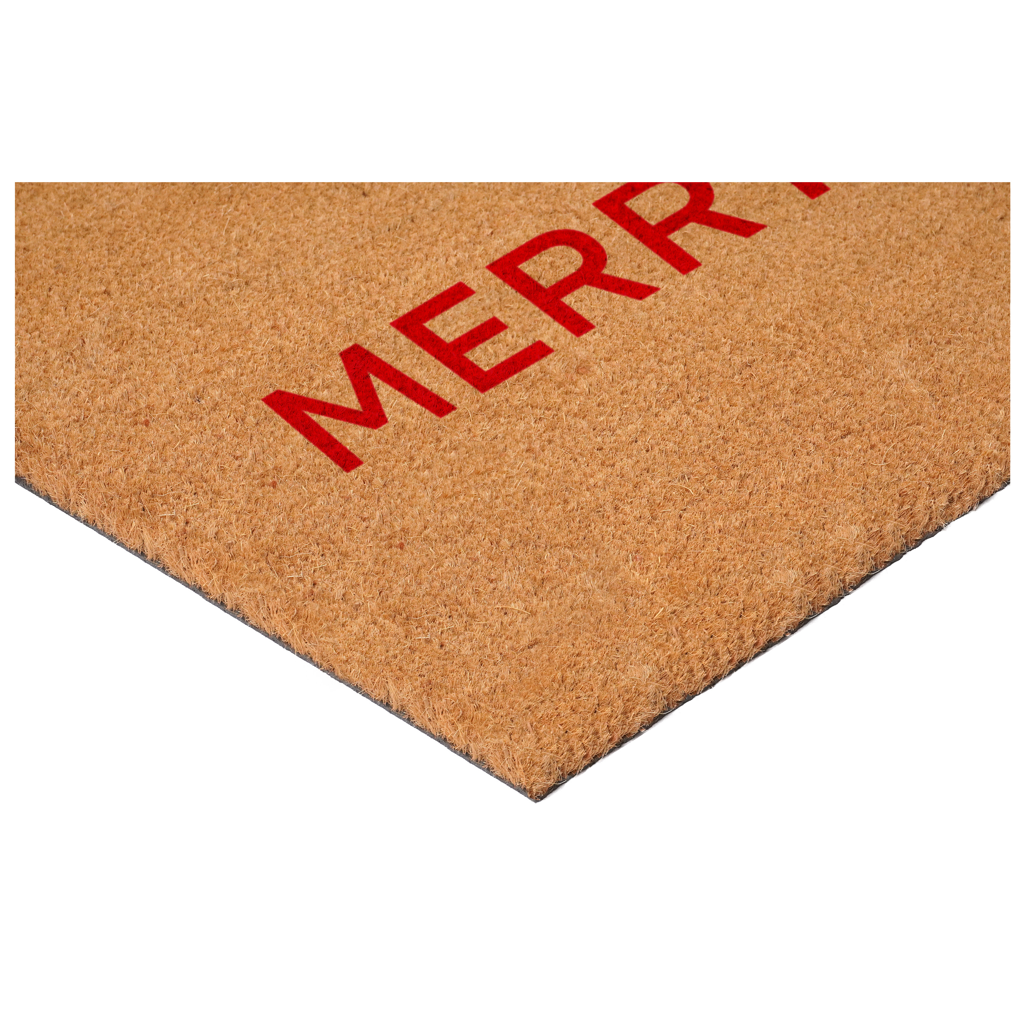 Known for it's extreme durability and ability to withstand heavy foot traffic, this 17-inch x 29-inch brown and red christmas merry and bright outdoor coir door mat is an ideal option for the front door or entrance way of your home or business. Crafted from coconut husks, this mat is not only functional but is an an eco-friendly and visually appealing accessory. The naturally bristled texture of coir is an efficient way to clean dirt and mud from shoes and is easy to clean and maintain. Add this festive and decorative christmas mat to create a practical yet inviting welcome to all who enter. 17.00-inch h x 29.00-inch w x 0.60-inch d.