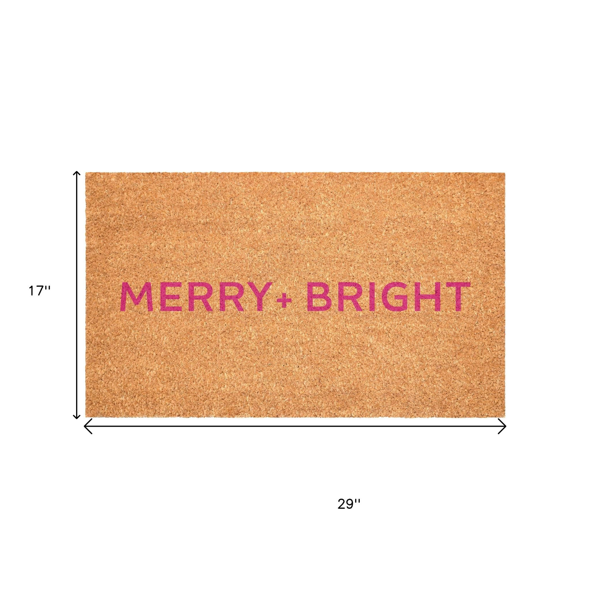 Known for it's extreme durability and ability to withstand heavy foot traffic, this 17-inch x 29-inch brown and pink christmas merry and bright outdoor coir door mat is an ideal option for the front door or entrance way of your home or business. Crafted from coconut husks, this mat is not only functional but is an an eco-friendly and visually appealing accessory. The naturally bristled texture of coir is an efficient way to clean dirt and mud from shoes and is easy to clean and maintain. Add this festive and decorative christmas mat to create a practical yet inviting welcome to all who enter. 17.00-inch h x 29.00-inch w x 0.60-inch d.