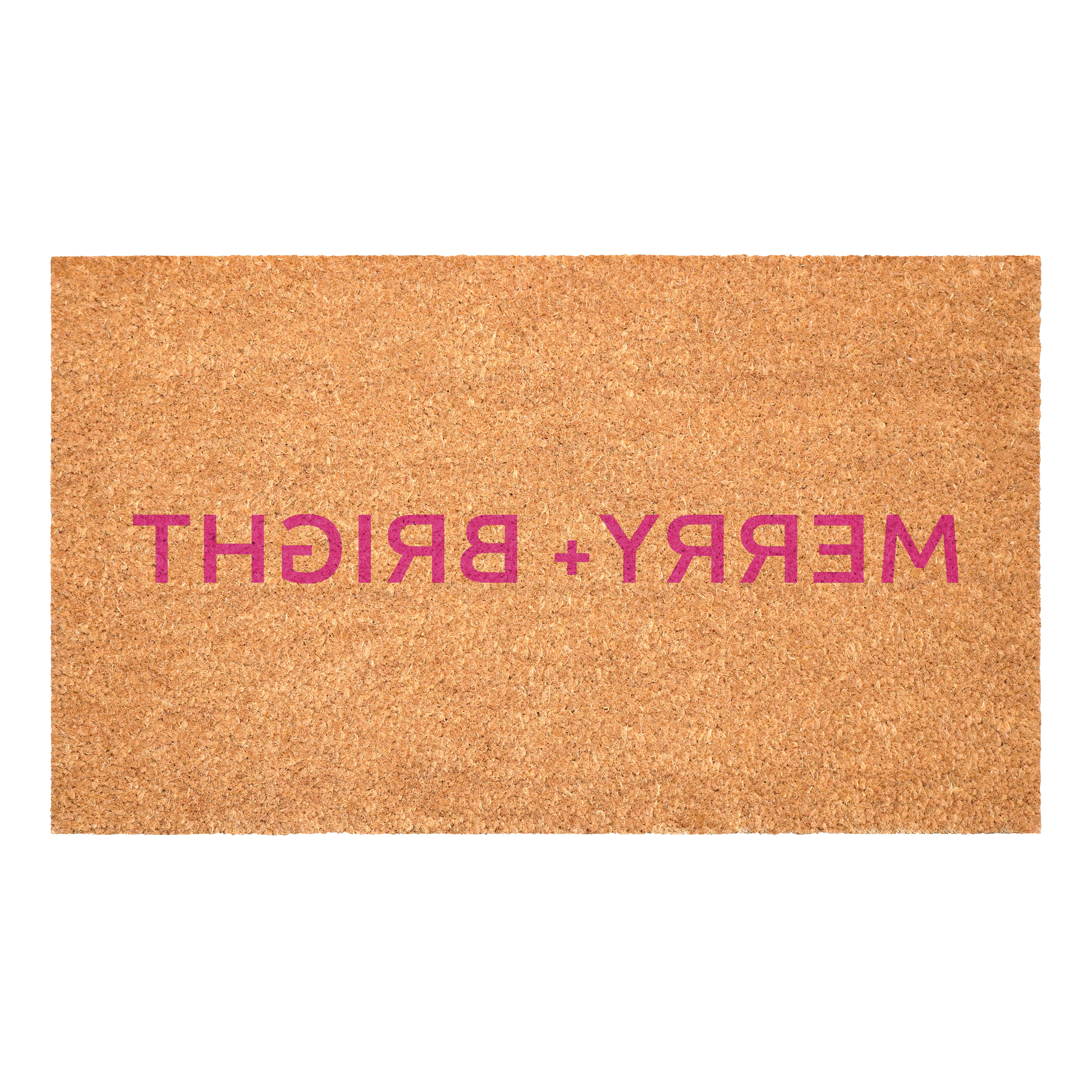 bright outdoor coir door mat, outdoor coir door mat, coir door mat, 17" X 29" brown pink christmas, merry bright outdoor coir door |