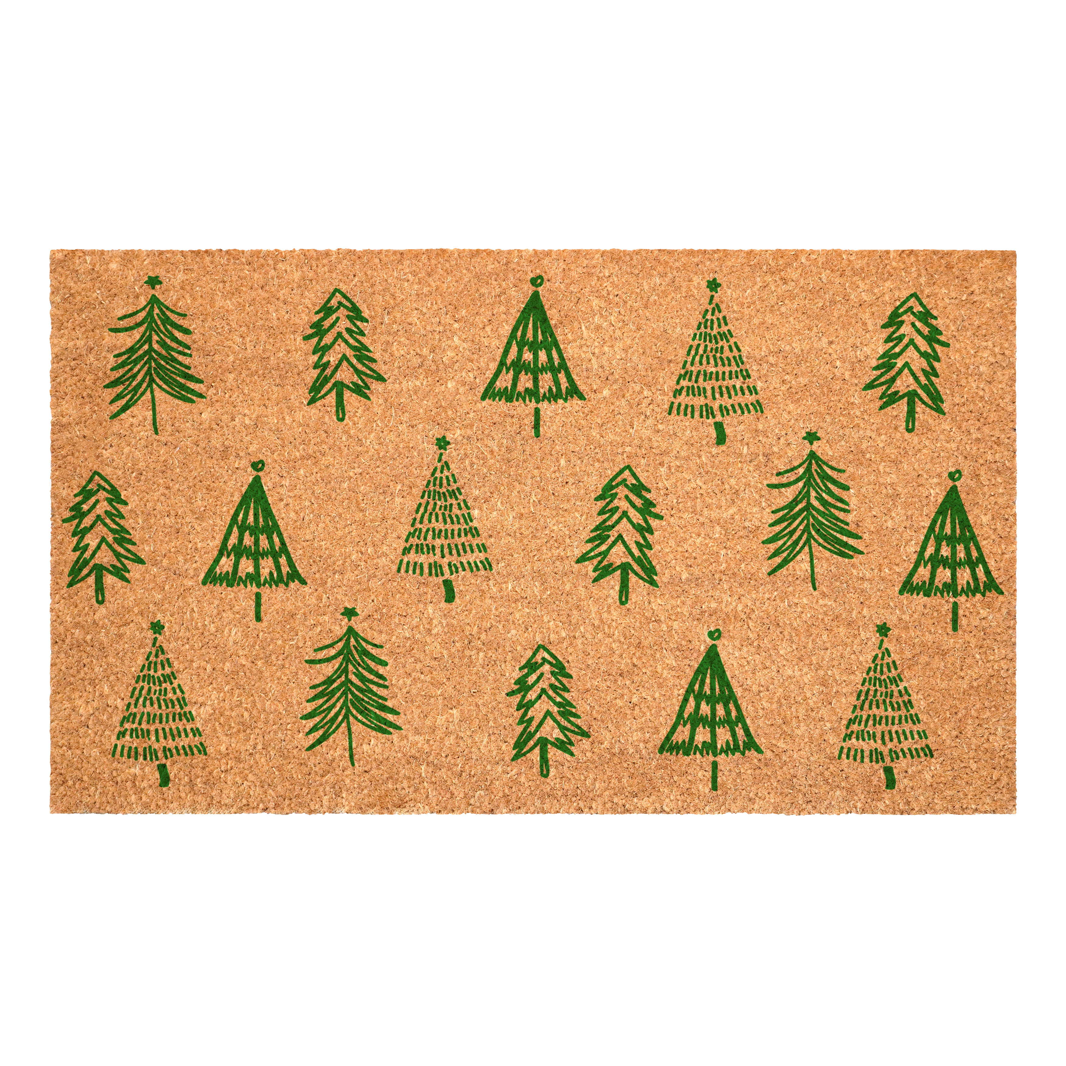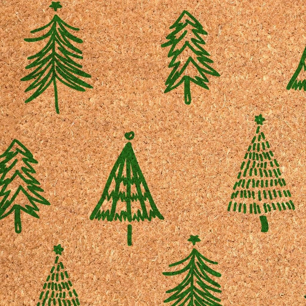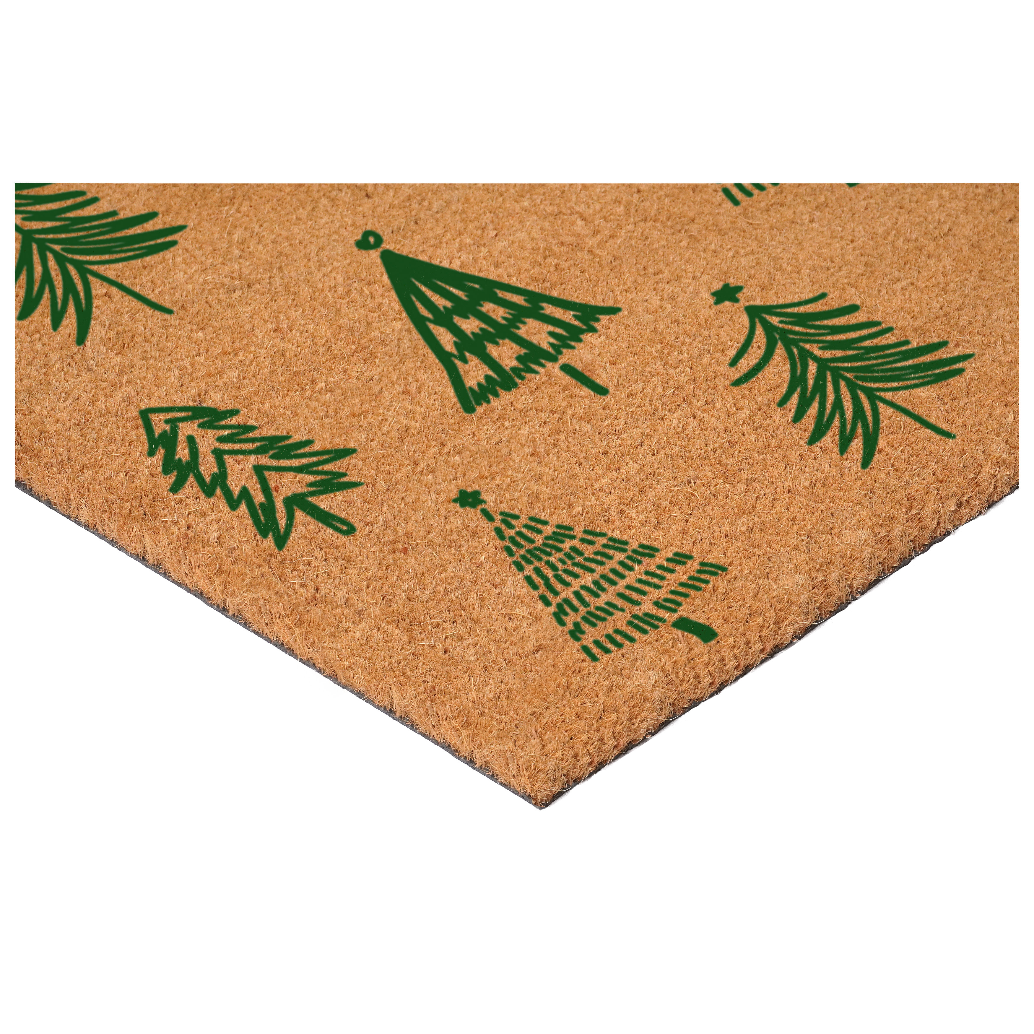 trees outdoor coir door mat, outdoor coir door mat, christmas trees outdoor coir door, coir door mat, 17" X 29" brown green christmas trees |
