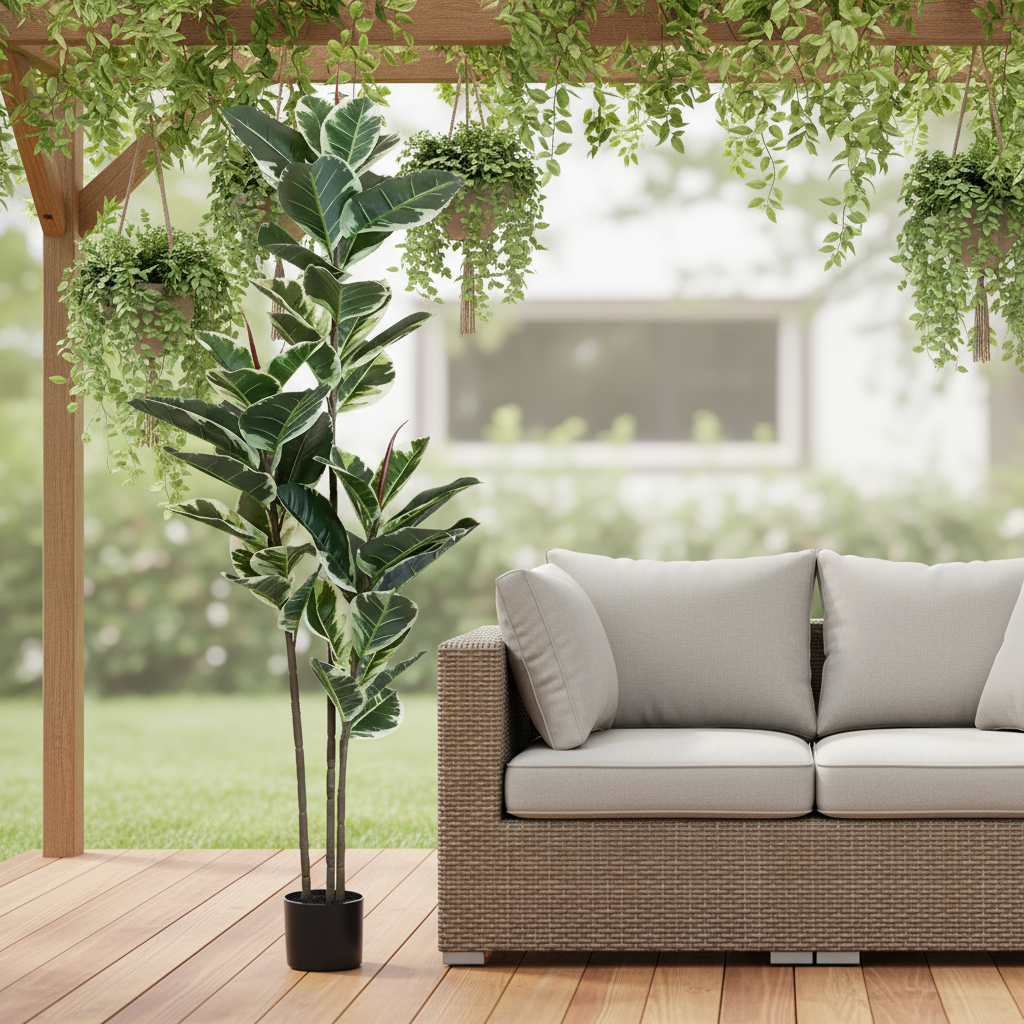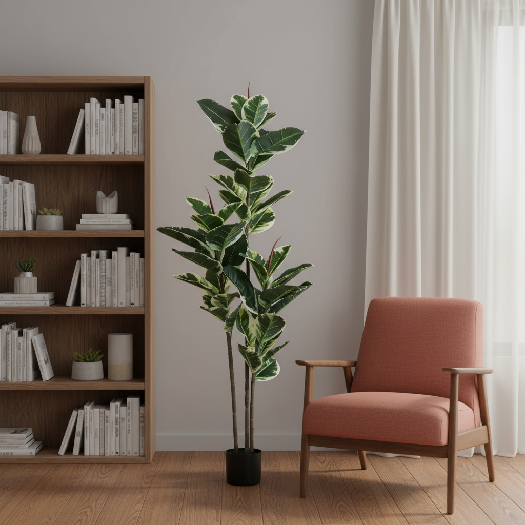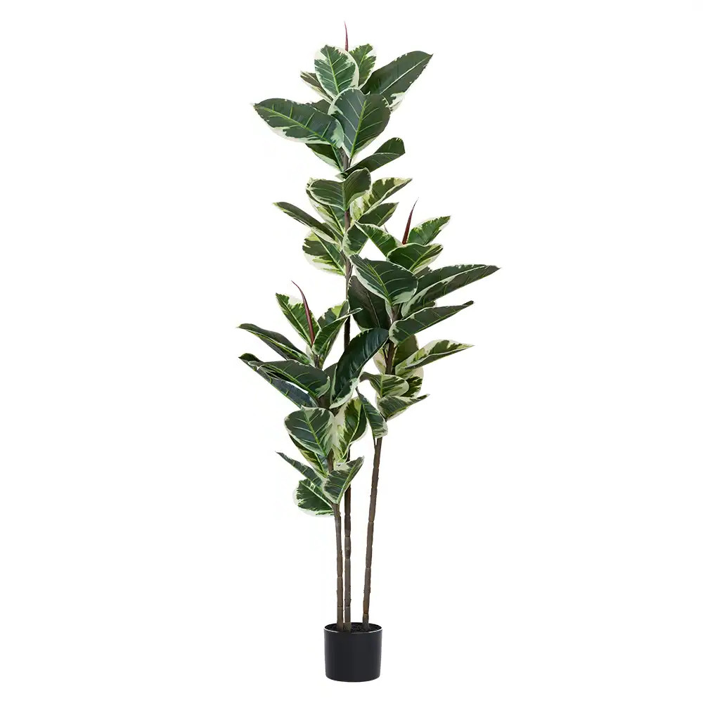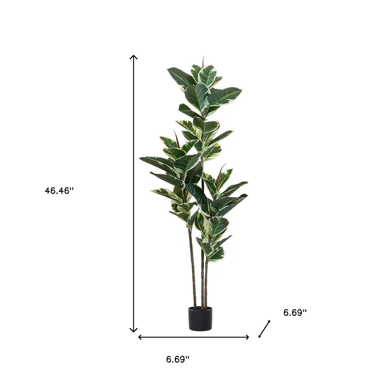 The 7-inch green artificial rubber in cylindrical black cement pot brings a touch of nature into your home without the upkeep of real plants. This stunning artificial tree showcases vibrant green foliage that enriches any space. Designed for floor placement, it makes a striking statement in living rooms or office environments. The black cement pot adds a modern flair, perfectly complementing the lush greenery. Made from high-quality plastic, this enduring piece is suitable for both indoor and outdoor use, providing versatility in your decor. The included base ensures stability while enhancing its aesthetic appeal, allowing you to enjoy the beauty of nature effortlessly. Elevate your interior design with this elegant and maintenance-free addition to your home. 62.99-inch h x 6.69-inch w x 6.69-inch d.