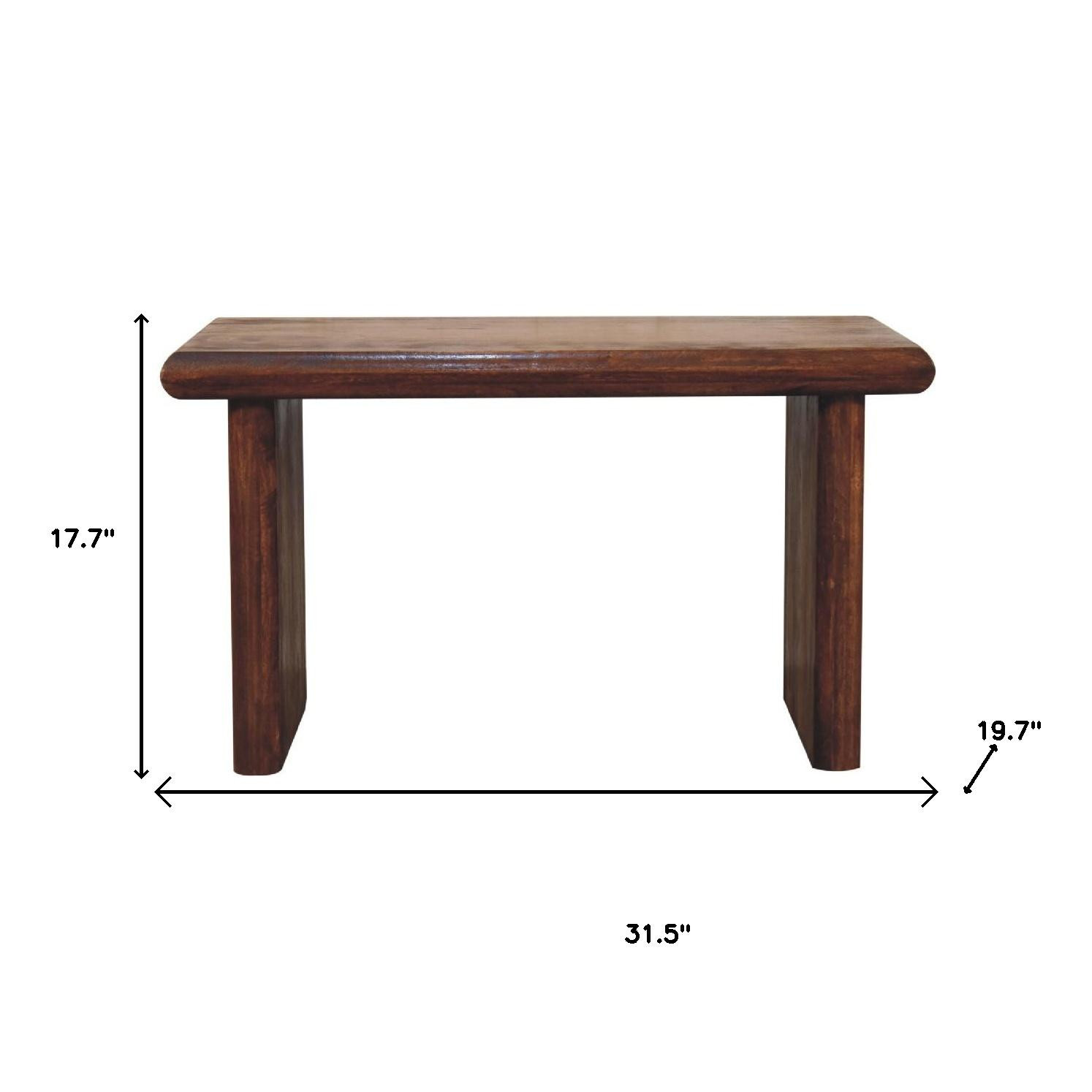 Make your living room or family room really stand out with this 32-inch chestnut solid wood solid coffee table. This table features quality construction from solid wood and an updated monotone color scheme with chestnut as the main color on both the top and the base. This classic rectangular table will be a great accent in any room it has an attractive design that will definitely breathe some fresh air into your interior. 17.70-inch h x 31.50-inch w x 19.70-inch d.