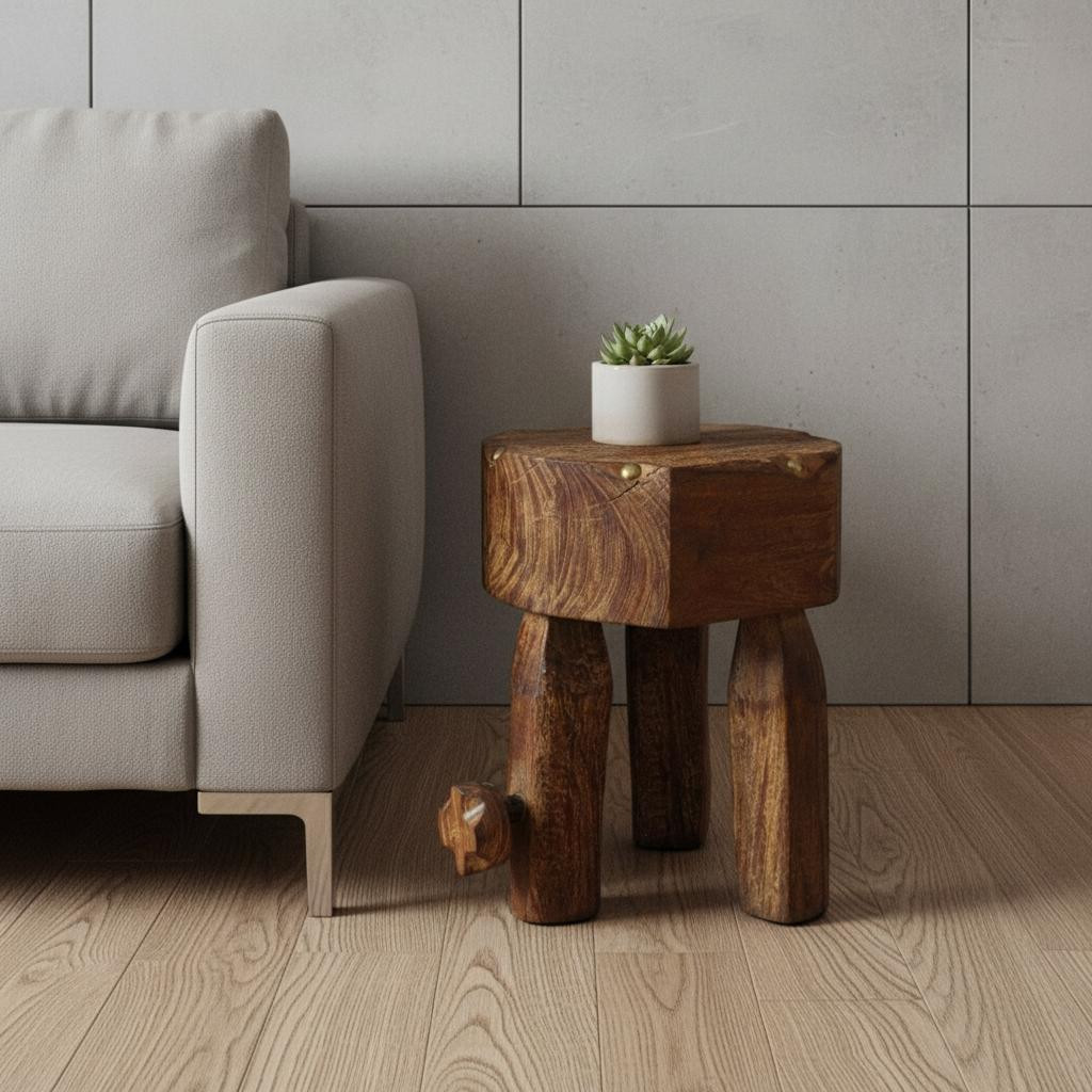 Optimize your space and add some charm to your room with the 18-inch brown solid wood round end table. Made of solid wood, the brown coloration throughout gives this piece an updated and refreshing look. A great accent on either side of the sofa or bed, this adorable end or side table is just what you need. You can also use it as an entryway table to hold your keys. 18.00-inch h x 16.50-inch w x 13.00-inch d.