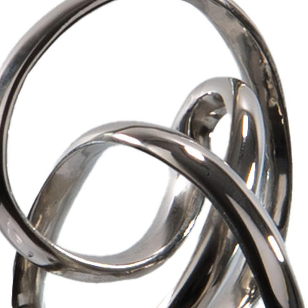 Unique and decorative, this 20-inch silver and black aluminum and marble modern abstract tabletop sculpture will leave a lasting impression. Handcrafted with care, this piece showcases the beauty of modern design, blending elegance and artistic expression effortlessly. The striking combination of aluminum and marble provides a sophisticated touch to any room. Its versatile style allows it to complement various decor themes, making it an ideal focal point for your space. Elevate your interior with this standout sculpture that embodies creativity and craftsmanship. 19.75-inch h x 6.50-inch w x 6.25-inch d.