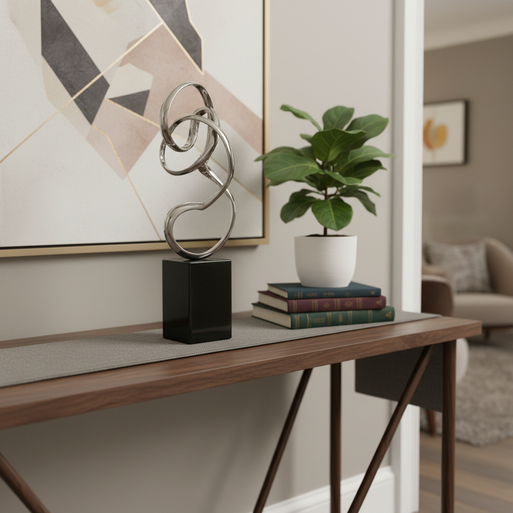 silver black aluminum tabletop sculpture, aluminum tabletop sculpture, black aluminum tabletop sculpture, 20" silver black aluminum tabletop, silver black aluminum tabletop |