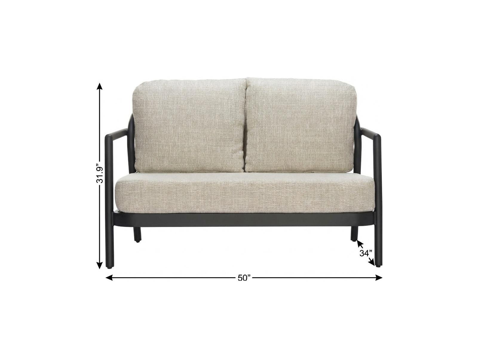 Transform your home's interior with this luxurious 50-inch beige polypropylene sofa. Solid colors give you lots of decorative options and are easy to work into your decor scheme. Removable back cushions make this sofa easy to manage. Fixed arms offer a comfy place to rest. Built to last, this sofa will be a great centerpiece for your room. 31.90-inch h x 50.00-inch w x 34.00-inch d.