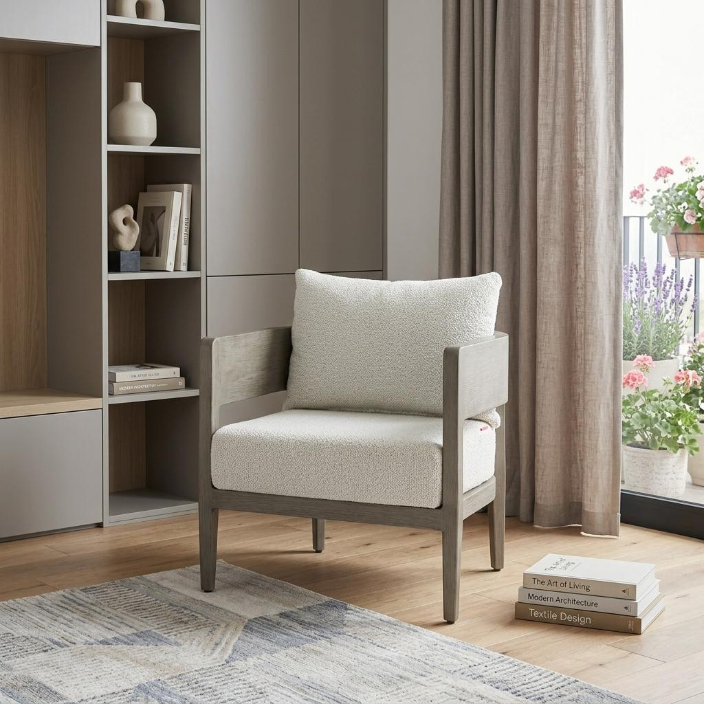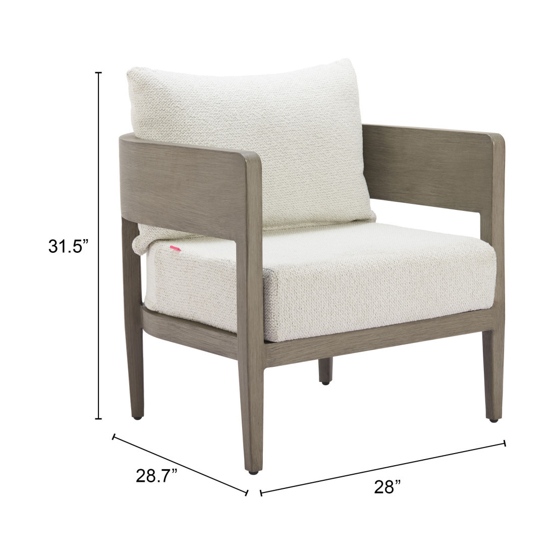 This 28-inch beige upholstered arm chair will add a beautiful decorative accent to your decor. This gorgeous solid color beige arm chair is masterfully upholstered in durable olefin. The high quality aluminum inner frame flaunts convenient armrests and a cushion back that are complimented by soft and comfortable cushioning. A versatile slipcover is included as part of the design, allowing you to change up the look of your room with a change of the cover. 31.50-inch h x 28.00-inch w x 33.00-inch d.