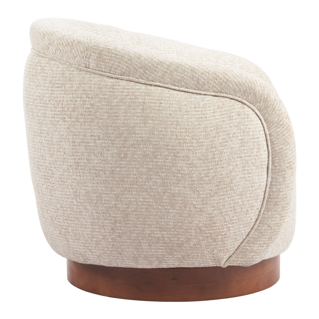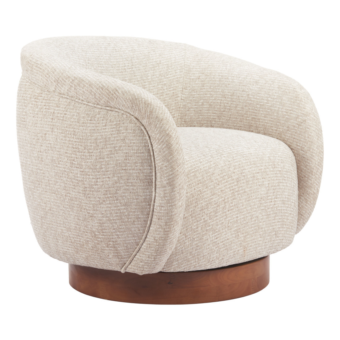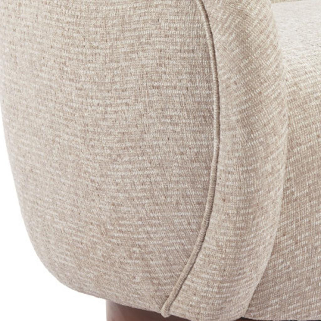 Stylish, elegant and fully functional, the 36-inch beige upholstered swivel arm chair adds a touch of panache to any set up. This gorgeous solid color beige arm chair is masterfully upholstered in durable 100% polyester. The sturdy inner frame and base is built with a mix of solid and manufactured woods, includes armrests, and features a tight curved back that is accented with soft and comfortable cushioning. A swivel feature allows this chair to turn, adding versatility to your seating. 31.10-inch h x 36.00-inch w x 34.00-inch d.