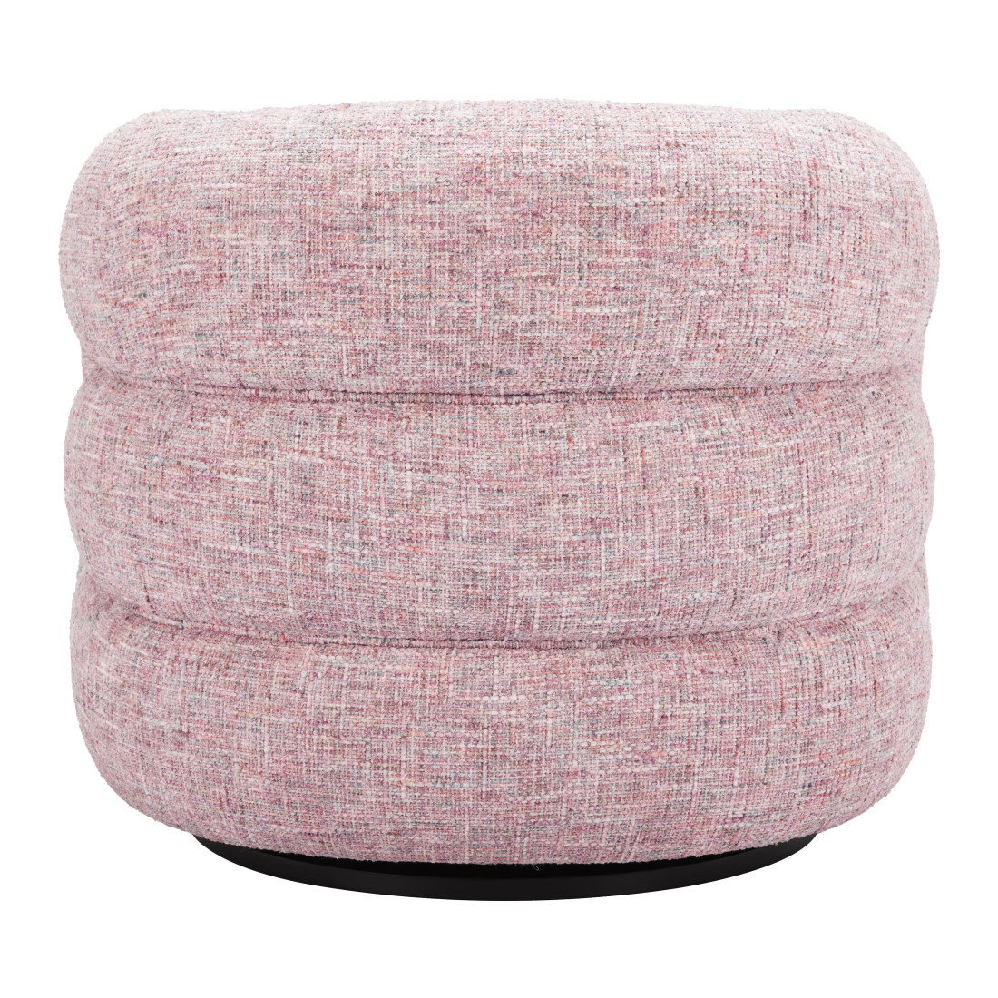 Unique and decorative, this 33-inch pink upholstered swivel arm chair will leave a lasting impression. This gorgeous solid color pink arm chair is masterfully upholstered in durable 100% polyester. The high quality manufactured wood inner frame flaunts convenient armrests and a tight back that are complimented by soft and comfortable cushioning. A swivel feature allows this chair to turn, adding versatility to your seating. 27.60-inch h x 33.00-inch w x 31.00-inch d.
