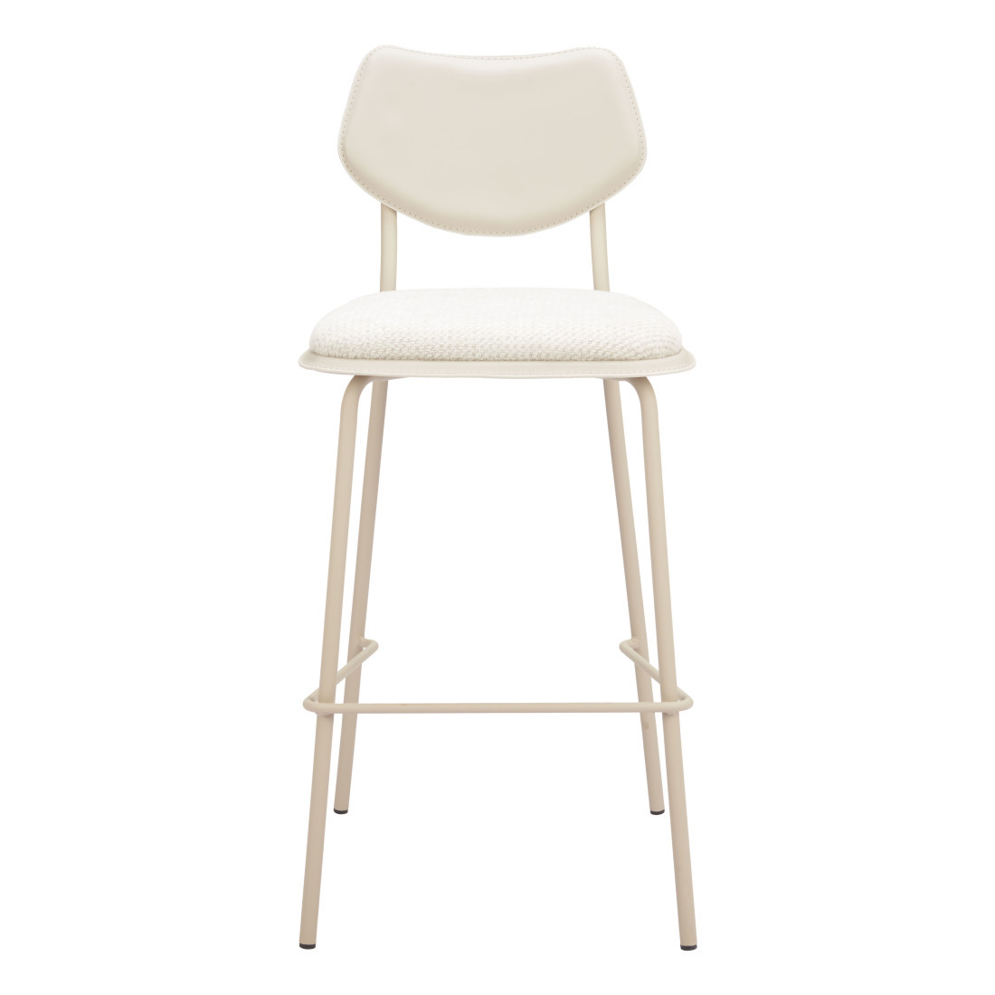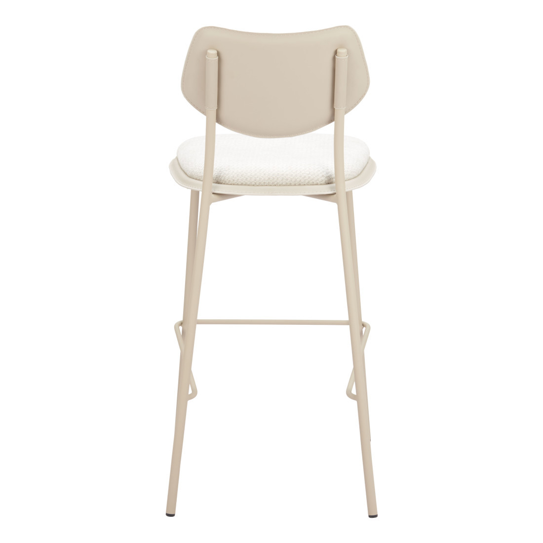 With this set of four 30-inch light gray fabric faux leather and steel bar height bar chairs you can add design and extra seating to your space. The mix of sturdy polyester cushioned fabric seats and faux leather comfy partial backs give these powder coated steel bar chairs a neutral look that is easy to blend into many settings. These durable and stylish chairs will add a touch of clean and modern style to your space. 40.90-inch h x 18.70-inch w x 22.00-inch d.