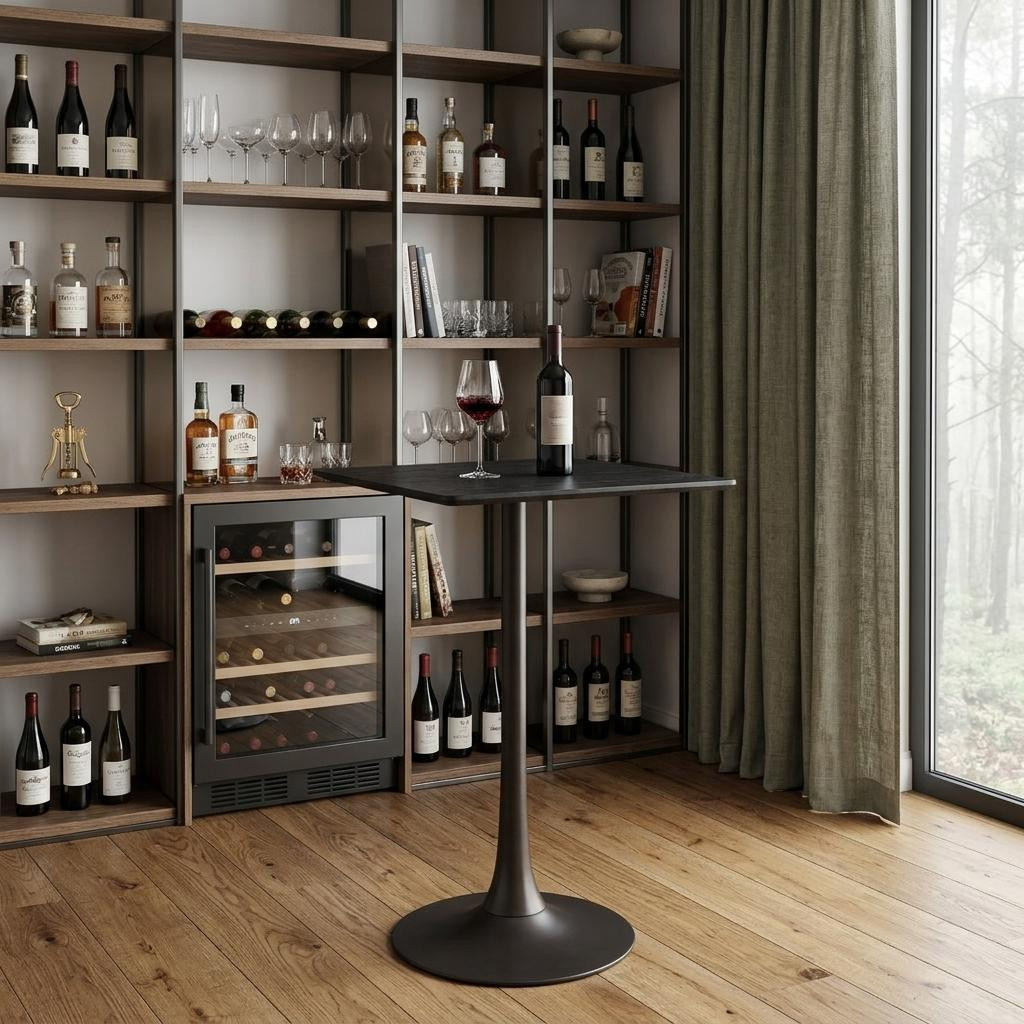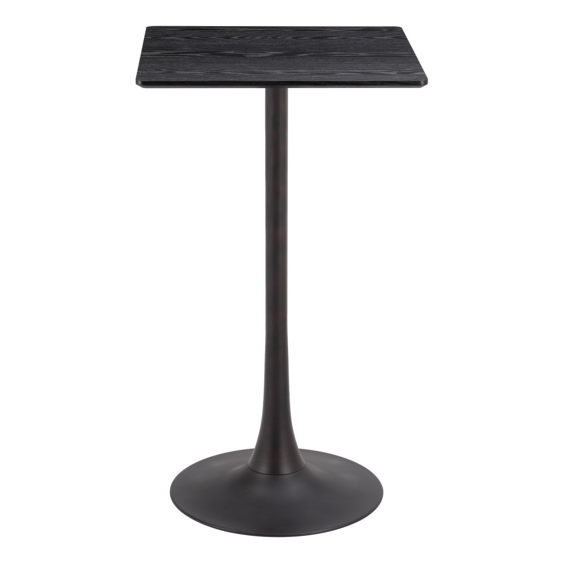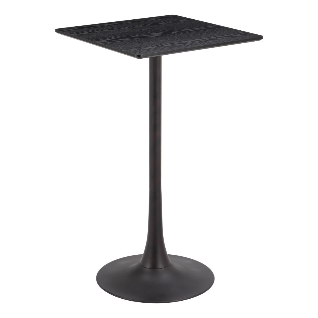 The 24-inch black wood and steel square bar table is a stunning addition to any dining or social space. Designed in a modern style, this table features a sleek square shape that complements contemporary decor. The top is crafted from durable manufactured wood, providing a smooth surface for meals and drinks. Its sturdy base, made of robust steel, ensures stability while adding a touch of elegance with its black finish. This table boasts a fixed mechanism, making it ideal for both casual and formal settings. The pedestal base design optimizes space, offering ample legroom while maintaining a chic aesthetic. Machine-made for quality and precision, it combines form and function seamlessly in any bar or restaurant setting. 41.70-inch h x 24.00-inch w x 24.00-inch d.
