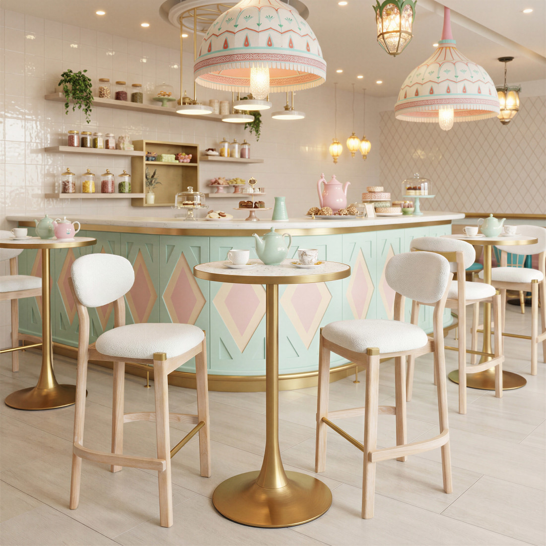 terrazzo steel rounded bar table, steel rounded bar table, faux terrazzo steel rounded bar, 24" beige gold faux terrazzo, 24" beige gold faux |