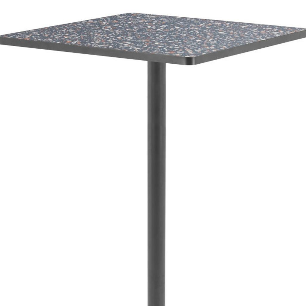 terrazzo steel square bar table, faux terrazzo steel square bar, black faux terrazzo steel square, steel square bar table, 24" black faux terrazzo steel |