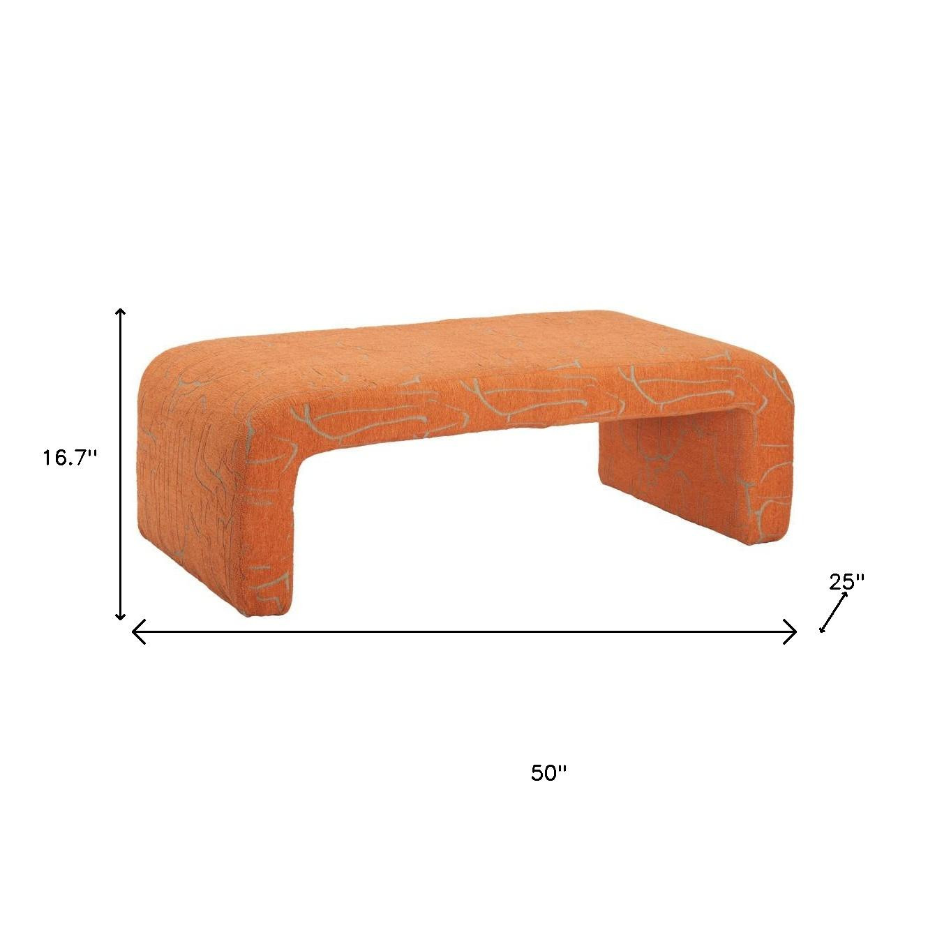 Practicality and fashion mix together with this handy 50-inch orange fabric and plastic upholstered bench. This bench features quality construction from plastic in an updated monotone color scheme with orange as the main color throughout. Ideal for entrance foyer, hallway, or laundry room. This bench is a great place store your keys, put on your shoes, or be a catchall on your way in or out. Benches don't have to be unsightly. Increase your seating and the fashion quotient of your room all at the same time with this hard wearing, versatile, and good looking bench. 16.70-inch h x 50.00-inch w x 25.00-inch d.