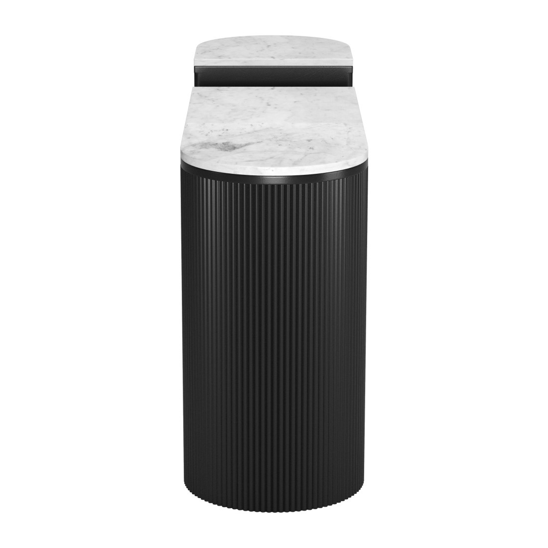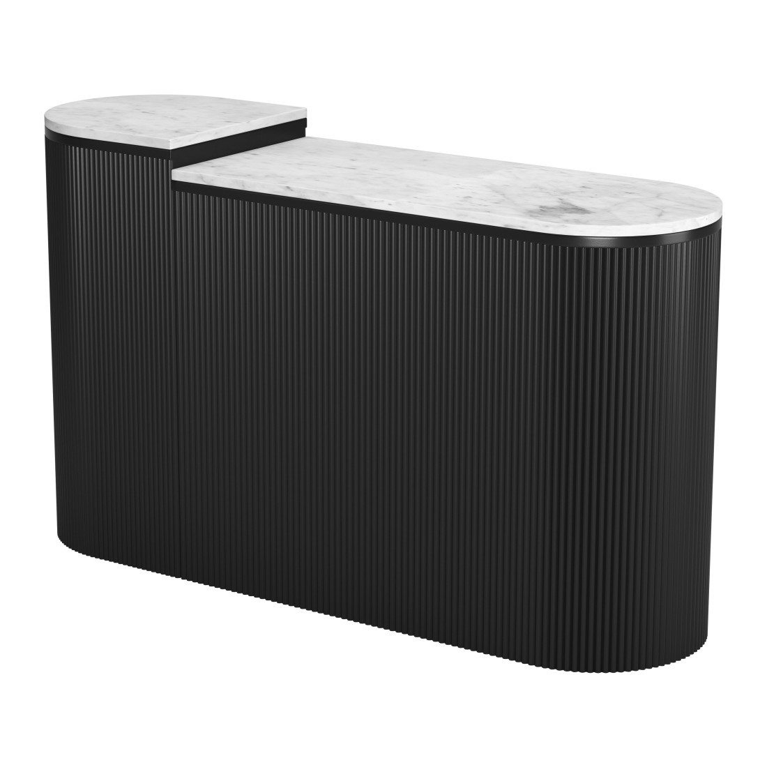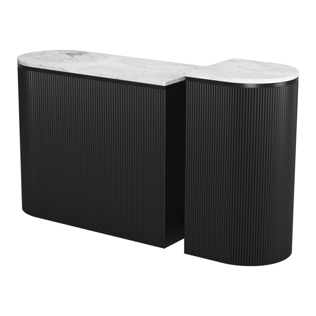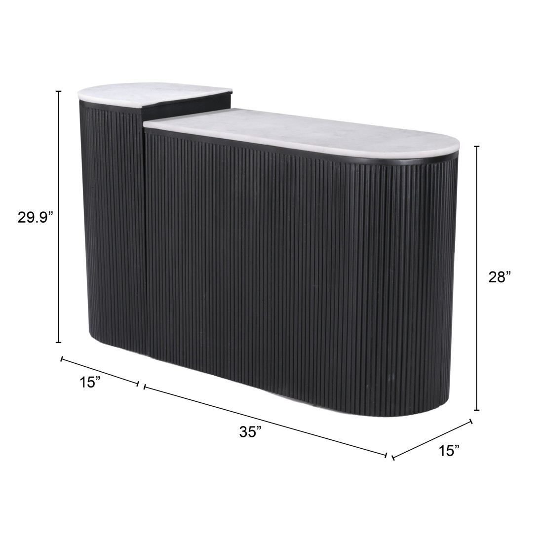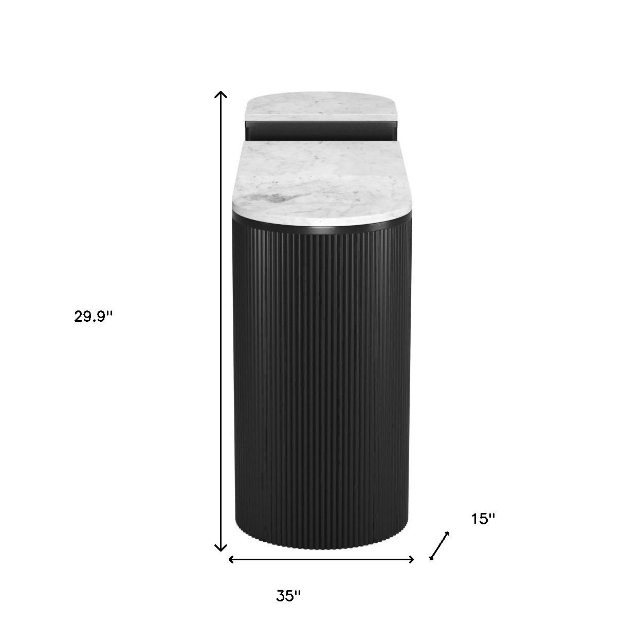 Our two piece 35-inch white and black genuine marble and solid wood oval solid console table a great addition to any room, serving as a stylish and decorative element. The oval shape of this console table promotes a soft, elegant, and intimate environment. This console table features a secure and solid white, genuine marble top. The solid base is made of solid wood, the most strong and durable option available. Versatile in use, console tables can be used for a variety of purposes in a variety of rooms and settings. 29.90-inch h x 35.00-inch w x 15.00-inch d.