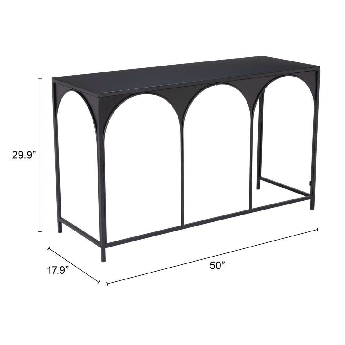 Don't settle for a boring entryway, upgrade your home with our 50-inch black steel frame console table today. This rectangular table is ideal for up against the wall, can free stand in a room, or sit behind the sofa perfectly. Features a steel tabletop that is a very durable material designed to withstand wear and tear over time. In addition to a great top, our console table has a unique arched steel frame base. Ideal for living rooms, bedrooms, home offices, and lounge areas, this console table is not only good looking but multi-functional and practical addition to your space. 29.90-inch h x 50.00-inch w x 18.00-inch d.