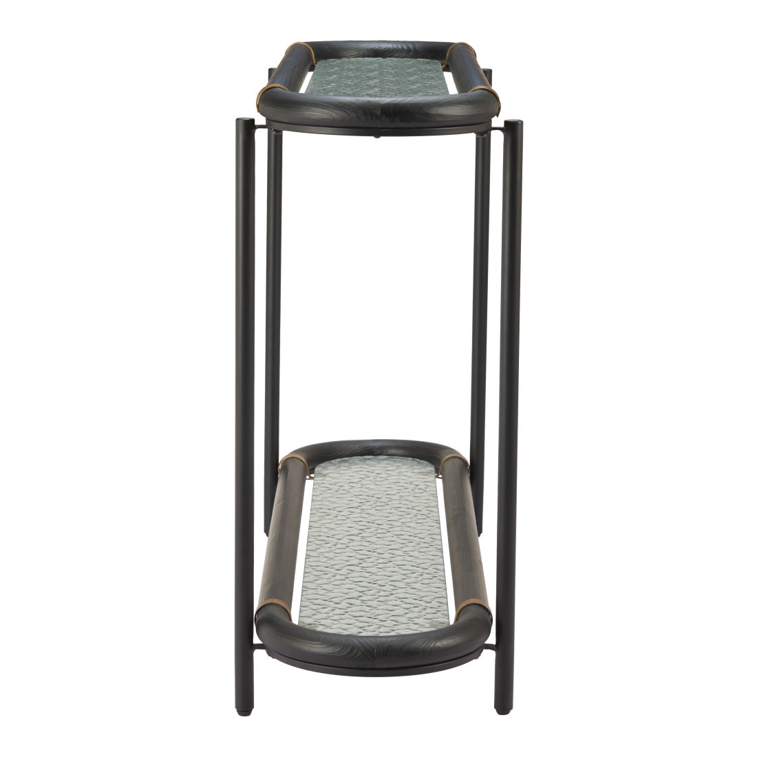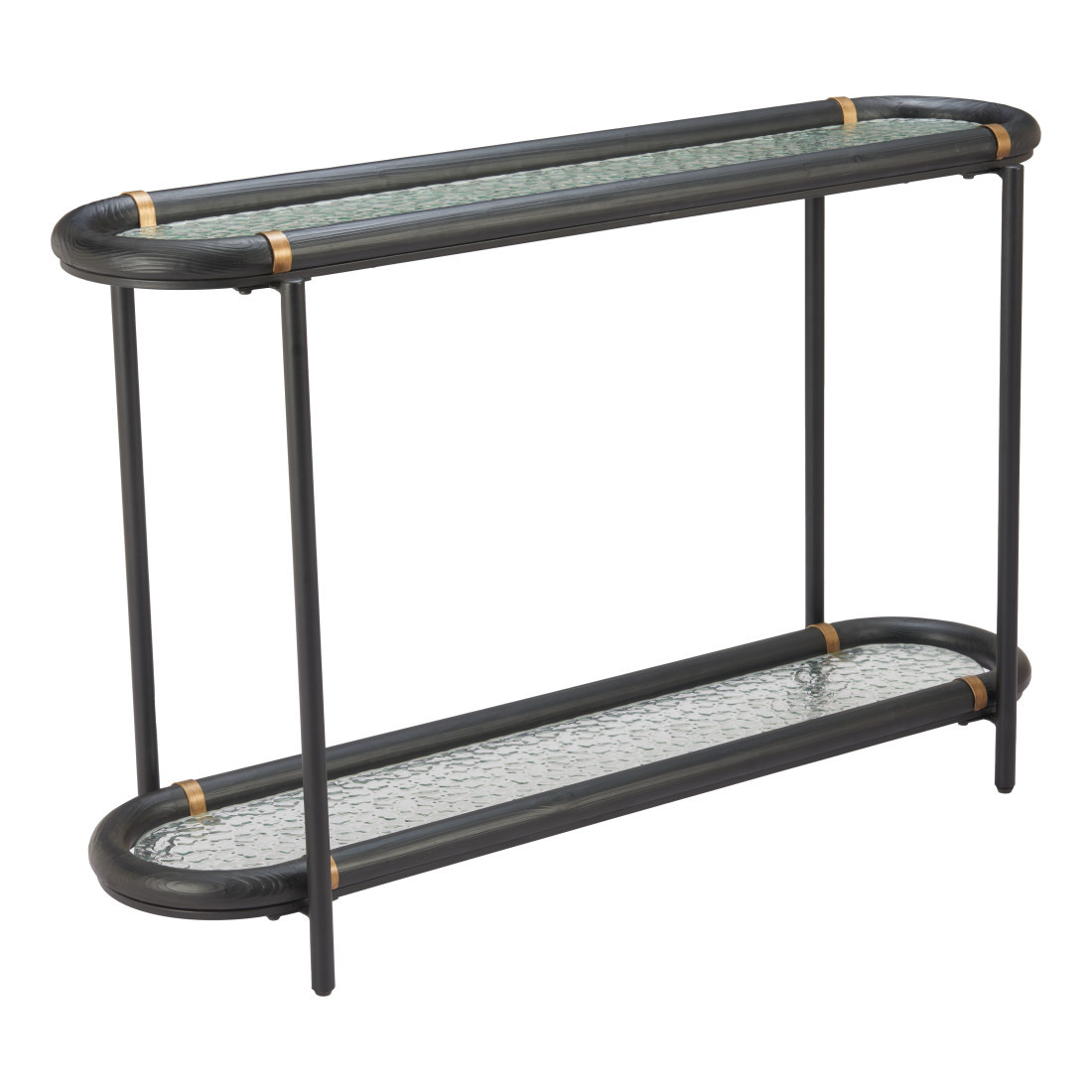 steel oval console table shelf, wood steel oval console table, oval console table shelf, console table shelf, black clear glass solid wood |