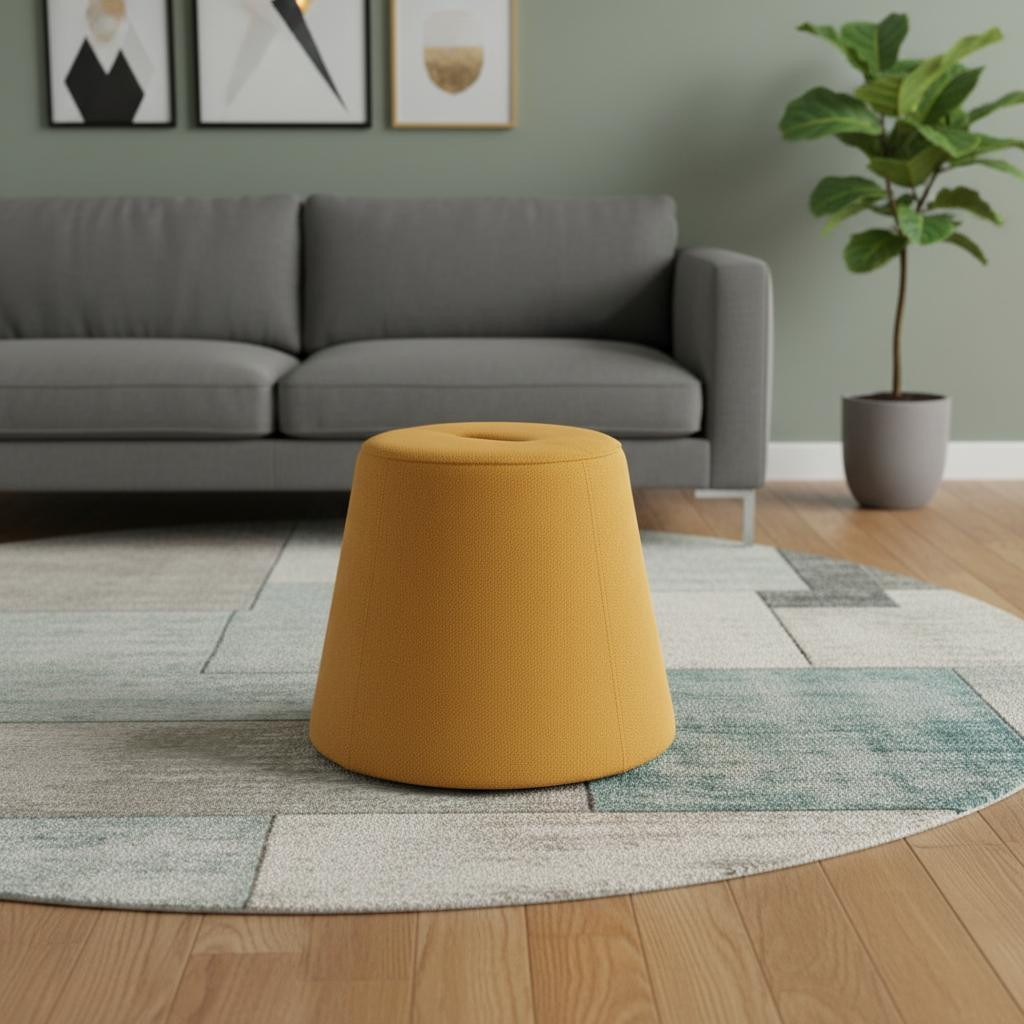 yellow orange fabric round ottoman, orange fabric round ottoman, fabric round ottoman, 19" yellow orange fabric round, 19" yellow orange fabric |