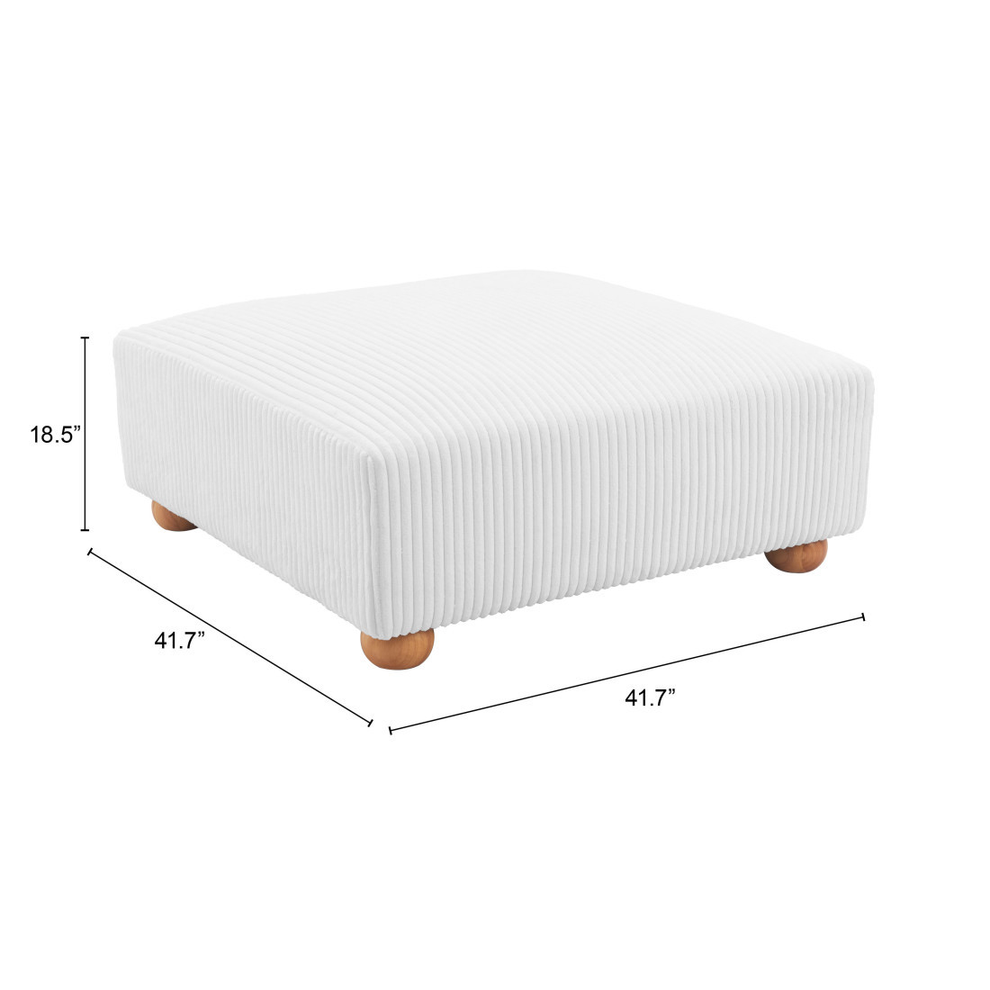 Practicality and fashion mix together with this handy 42-inch white and natural fabric ottoman. The plastic top of this ottoman is a nice contrast to the upholstery material. Expertly upholstered with padding in a soft solid color polyester, this ottoman is as comfortable as it is good looking. Easy to blend into most any room, a ottoman is a way to add a good looking accent to your space that can also be practical and useful. 18.50-inch h x 42.00-inch w x 42.00-inch d.