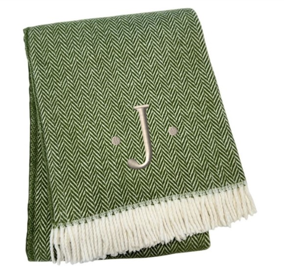 Bring warmth, comfort and style to your space with this 55-inch x 70-inch moss green and white herringbone cotton blend "J" throw blanket with tassels and embroidery. Features a woven herringbone design that offers sumptuous softness and texture that you'll cherish for years to come. Made from cotton blend this blanket will make a great addition to any room it's added to. Versatile to decorate with your first or last name, this embroidered monogram initial blanket will add some personalized style to your space or be a great gift. This cozy throw blanket is sure to become your go-to couch companion. 70.00-inch h x 55.00-inch w x 0.50-inch d.