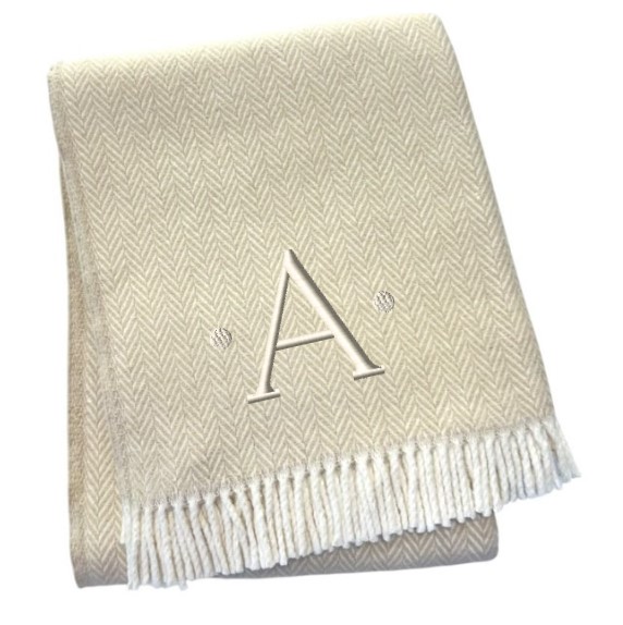 This 55-inch x 70-inch linen and white herringbone cotton blend "A" initial throw blanket with tassels and embroidery is the perfect accent you've been searching for. Features a woven herringbone design that offers sumptuous softness and texture that you'll cherish for years to come. Made from cotton blend this blanket will make a great addition to any room it's added to. Versatile to decorate with your first or last name, this embroidered monogram initial blanket will add some personalized style to your space or be a great gift. This cozy throw blanket is sure to become your go-to couch companion. 70.00-inch h x 55.00-inch w x 0.50-inch d.
