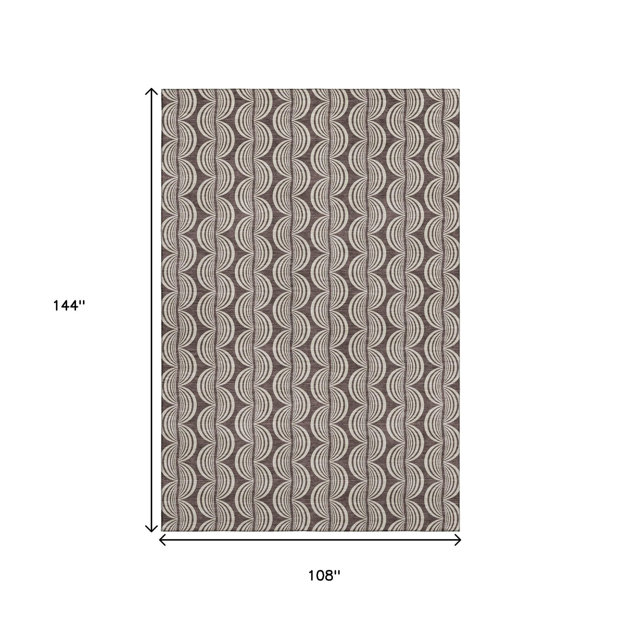Set an inviting tone in your space with this 9-foot x 12-foot chocolate and ivory ogee washable area rug with uv protection. Ideal for spaces with kids and pets, this rug is stain resistant to help repel dirt and spilled liquids. Built to last, this rug crafted from polyester fibers is known for its durability and long lasting appeal. Rugs are a great way to showcase your style, hide imperfections, warm your home and reduce noise. This larger sized, transitional styled rug is ready to create a focal point or statement piece in your room. 108.00-inch h x 144.00-inch w x 0.39-inch d.