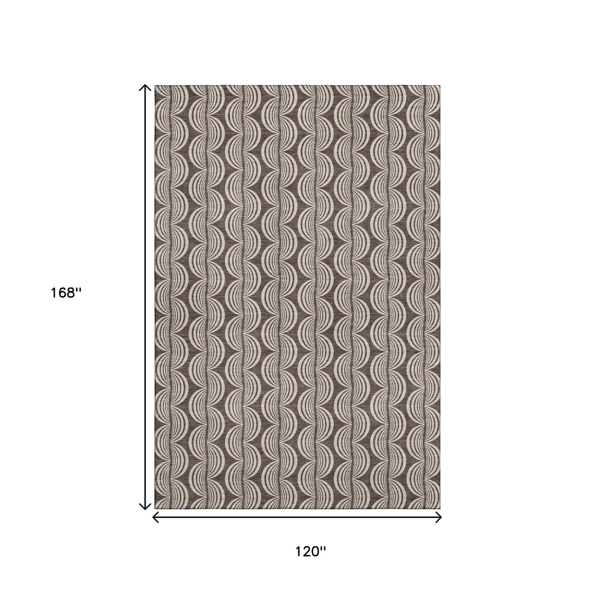This 10-foot x 14-foot chocolate and ivory ogee washable area rug with uv protection, is a great way to add warmth to a room. Ideal for spaces with kids and pets, this rug is stain resistant to help repel dirt and spilled liquids. Built to last, this rug crafted from polyester fibers is known for its durability and long lasting appeal. Rugs are a great way to showcase your style, hide imperfections, warm your home and reduce noise. This larger sized, transitional styled rug is ready to create a focal point or statement piece in your room. 120.00-inch h x 168.00-inch w x 0.39-inch d.