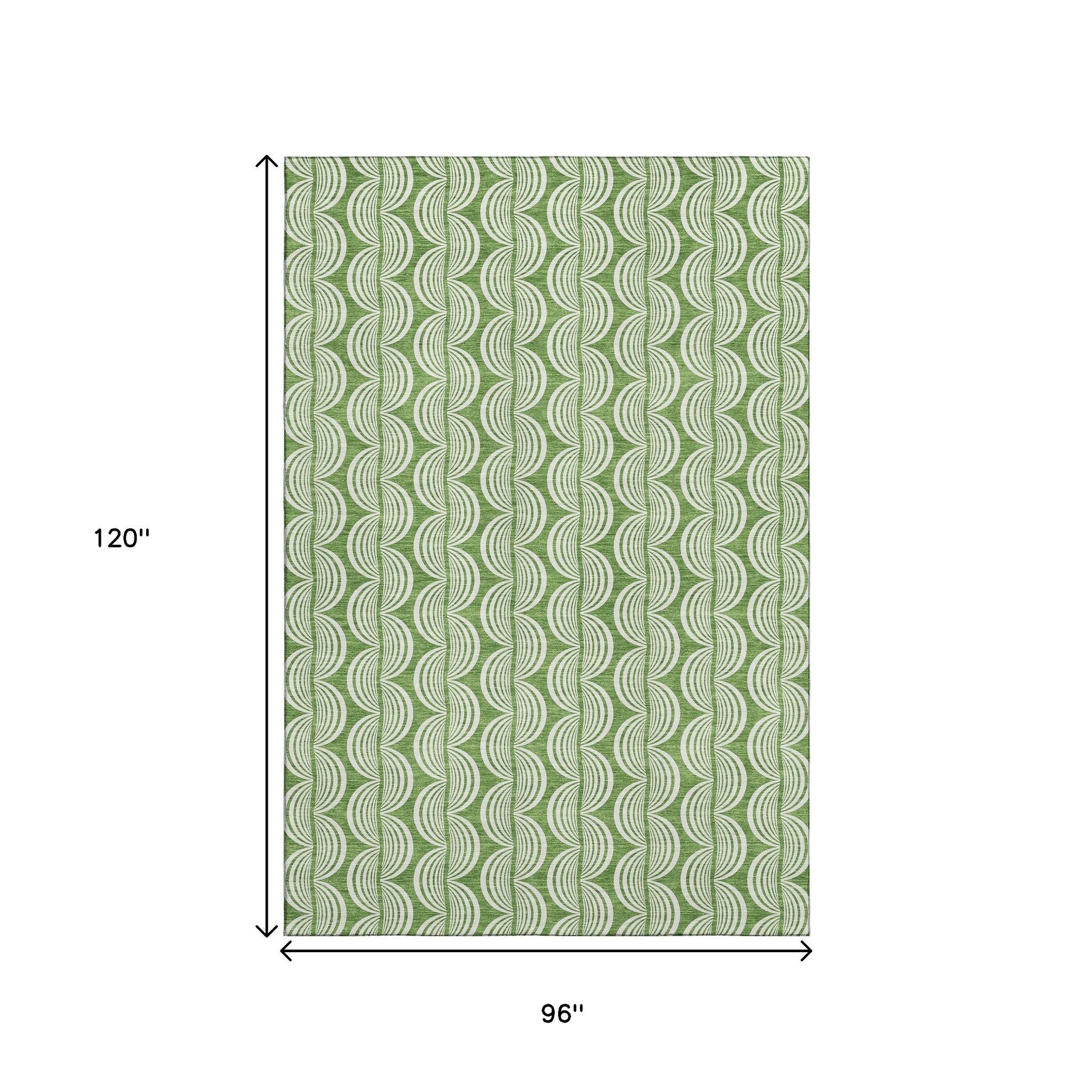 Add great coloration and comfortable texture to your space with this 8-foot x 10-foot green and ivory ogee washable area rug with uv protection. Ideal for spaces with kids and pets, this rug is stain resistant to help repel dirt and spilled liquids. Built to last, this rug crafted from polyester fibers is known for its durability and long lasting appeal. Rugs are a great way to showcase your style, hide imperfections, warm your home and reduce noise. This larger sized, transitional styled rug is ready to create a focal point or statement piece in your room. 96.00-inch h x 120.00-inch w x 0.39-inch d.